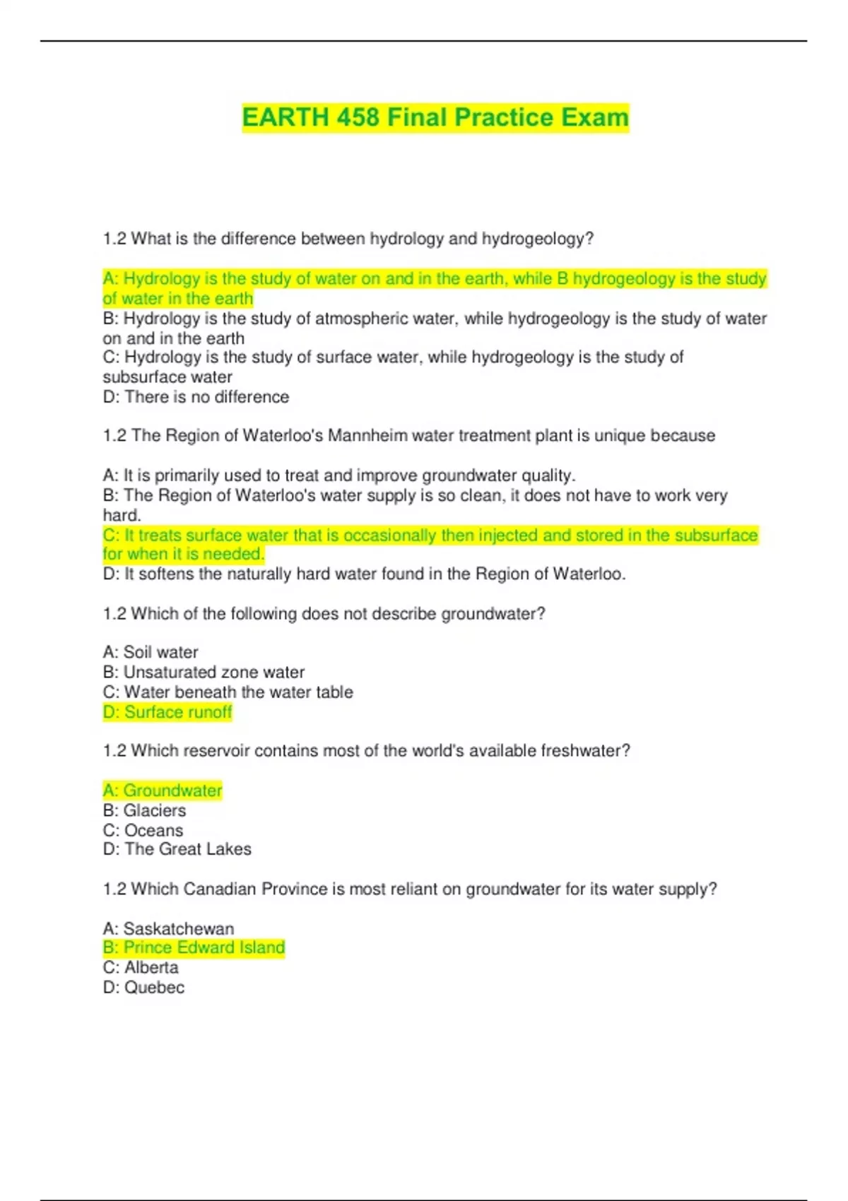 A: Hydrology is the study of water on and in the earth, while B hydrogeology is the study