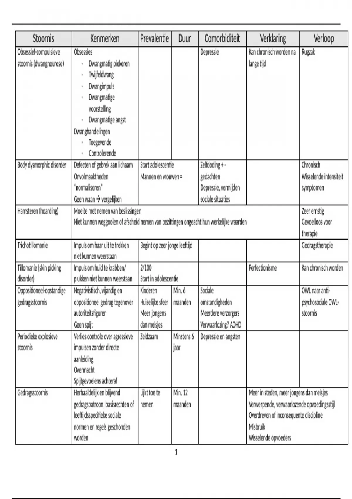 , Stoornis Kenmerken Prevalentie Duur Comorbiditeit Verklaring Verloop