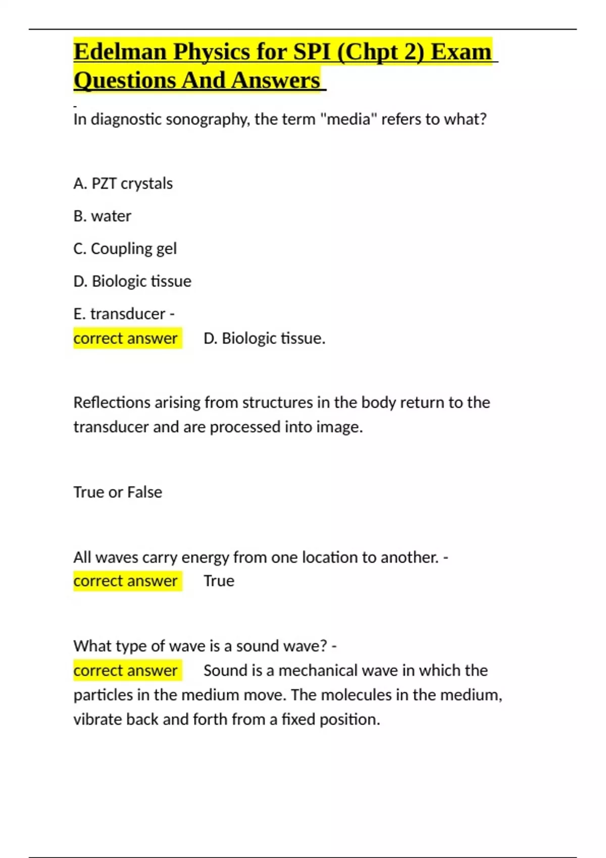 , Edelman Physics for SPI (Chpt 2) Exam