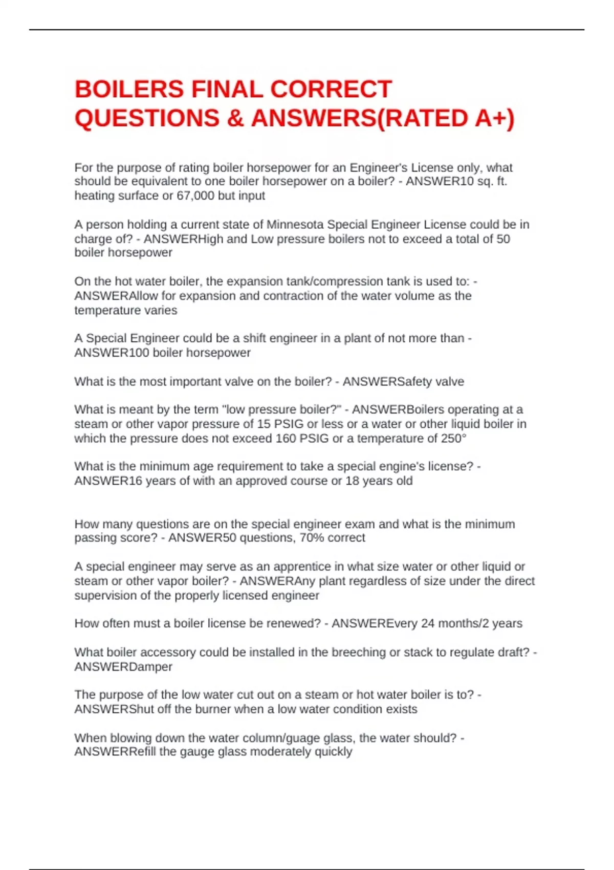 BOILERS FINAL CORRECT QUESTIONS & ANSWERS(RATED A+)