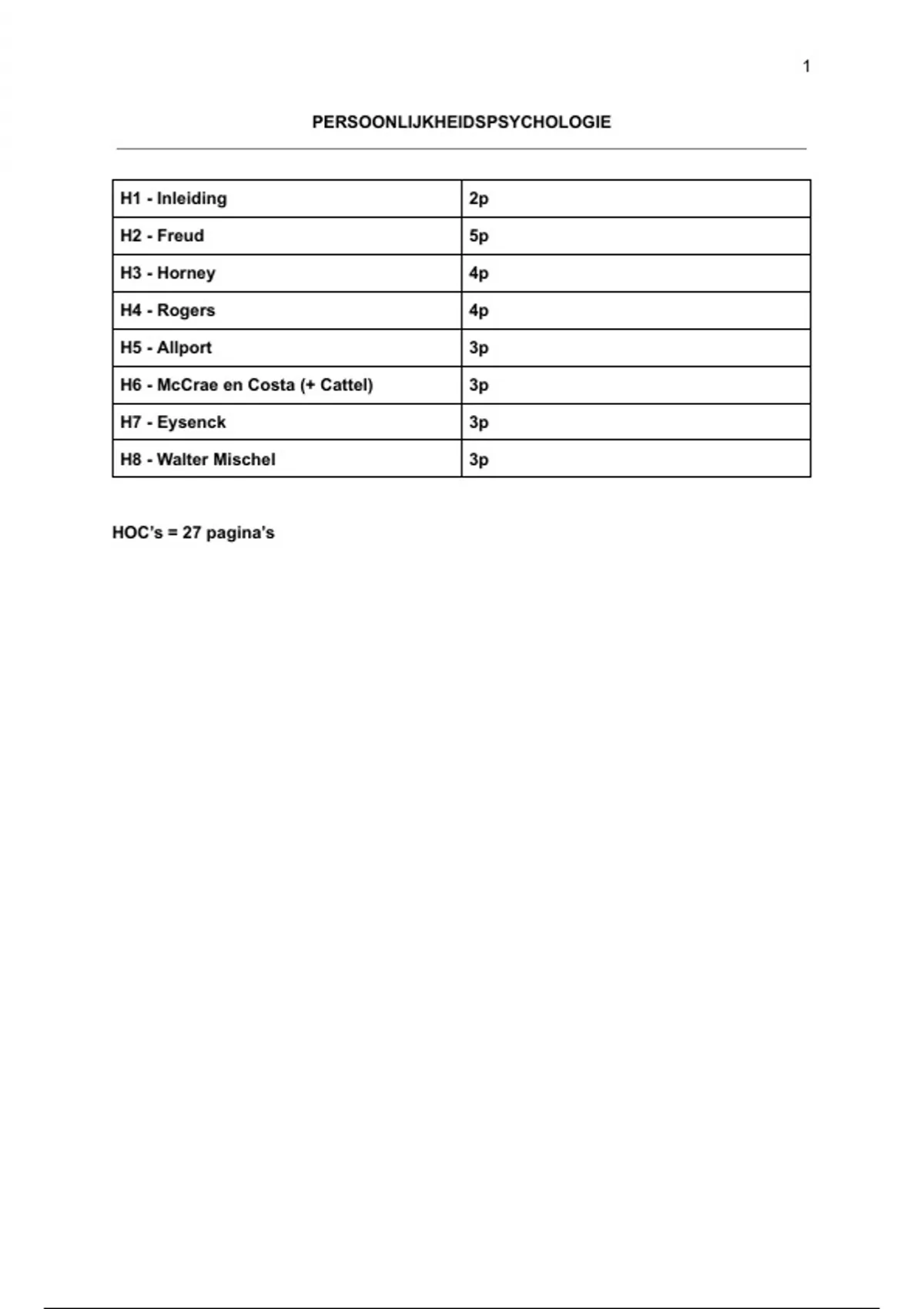 SAMENVATTING PERSOONLIJKHEIDSPSYCHOLOGIE HOC's - duidelijke samenvatting van de hoorcolleges, vergeleken met de reconstructies en je kan alle vragen oplossen - alles wat je moet kennen van de hoorcolleges staat er in VOLDOENDE OM TE SLAGEN VOOR DIT VAK!