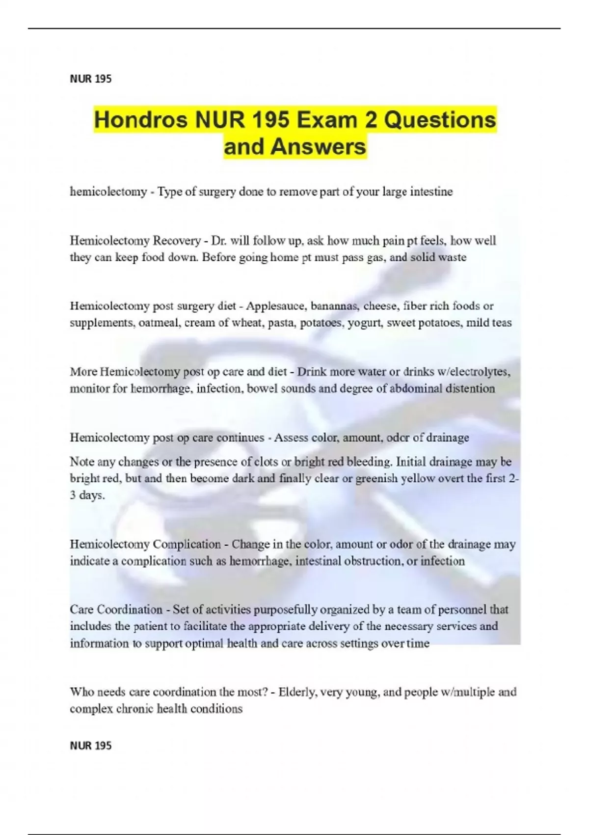 Hondros NUR 195 Exam Questions and Answers Bundle!!