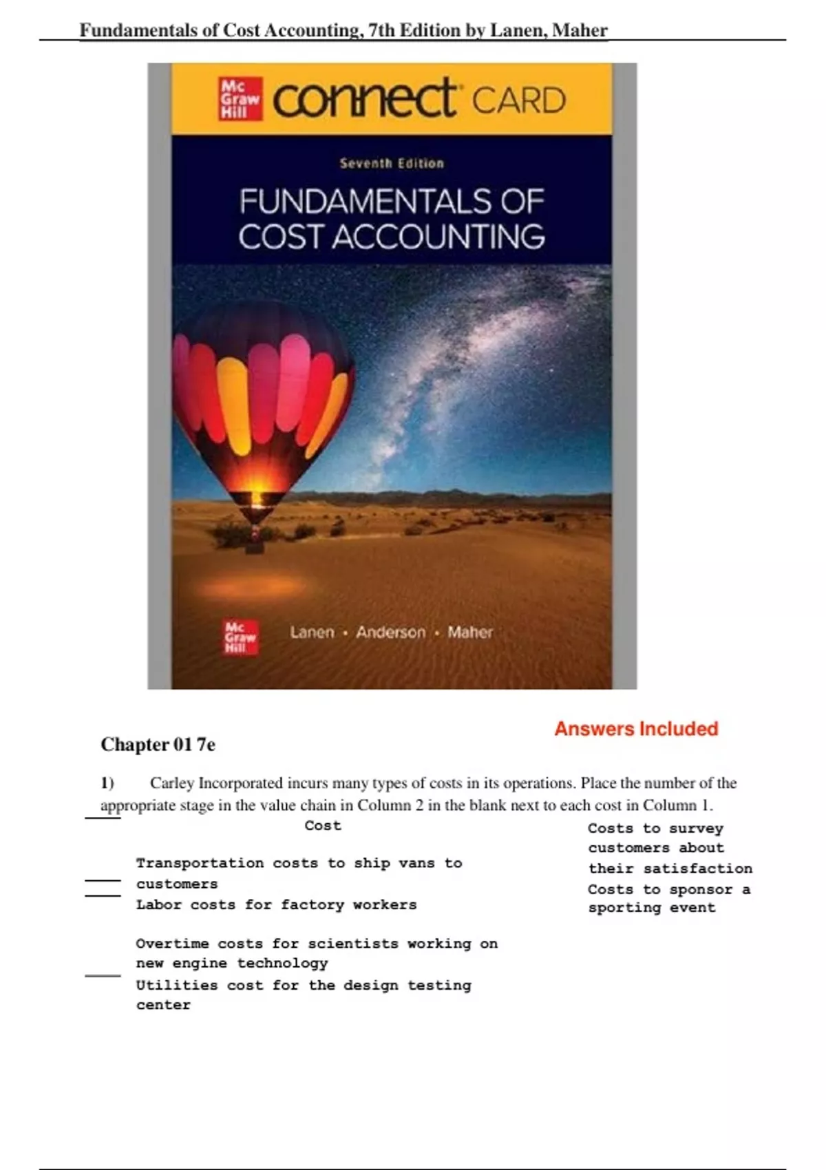appropriate stage in the value chain in Column 2 in the blank next to each cost in Column 1.