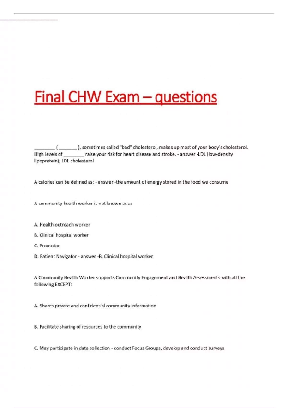 Final CHW Exam – questions