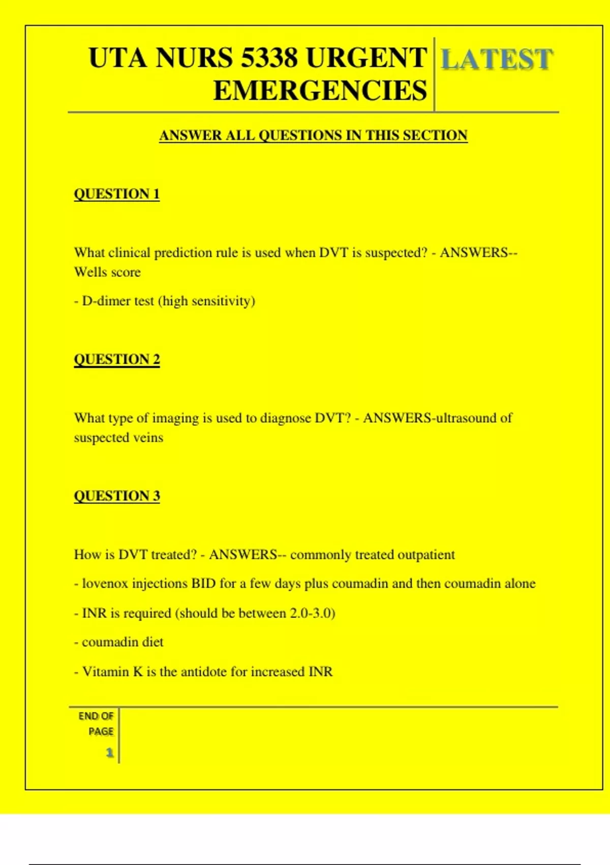 UTA NURS 5338 URGENT EMERGENCIES QUESTIONS AND ANSWERS 2025