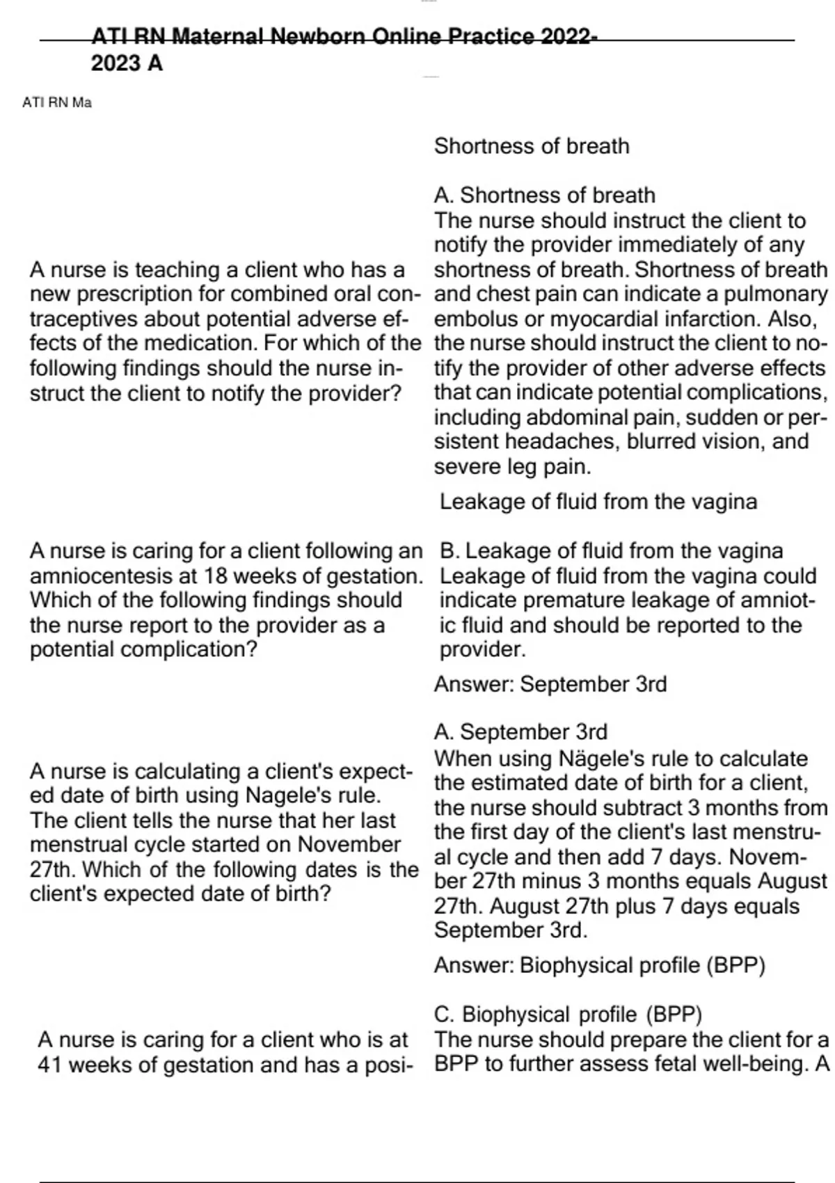 ATI RN Maternal Newborn Online Practice 2022-