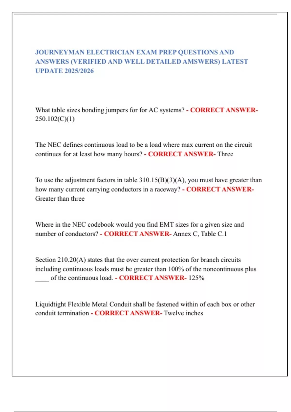 JOURNEYMAN ELECTRICIAN EXAM PREP QUESTIONS AND