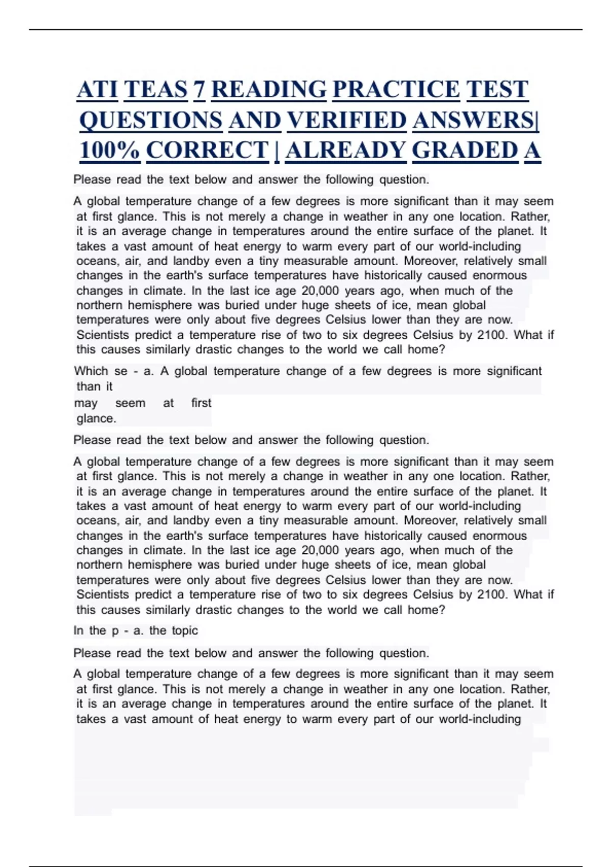 Which xse x- xa. xA xglobal xtemperature xchange xof xa xfew xdegrees xis xmore xsignificant