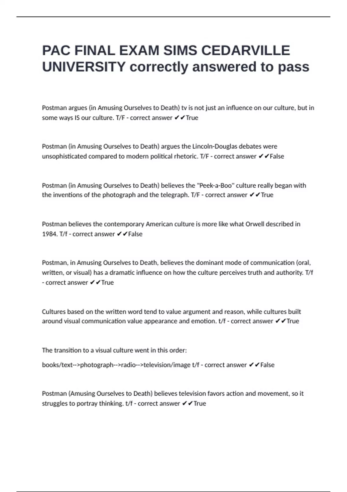 books/text-->photograph-->radio-->television/image t/f - correct answer ✔✔False