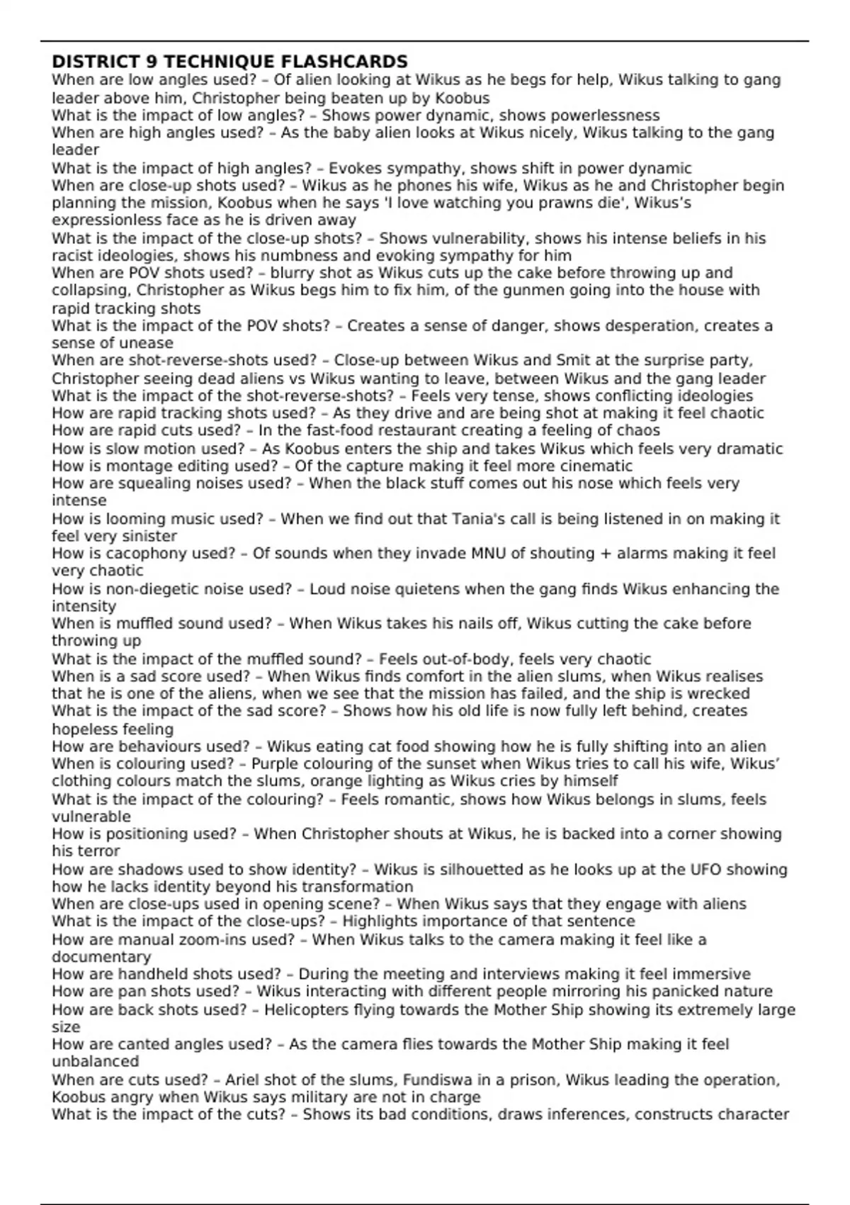 DISTRICT 9 TECHNIQUE FLASHCARDS