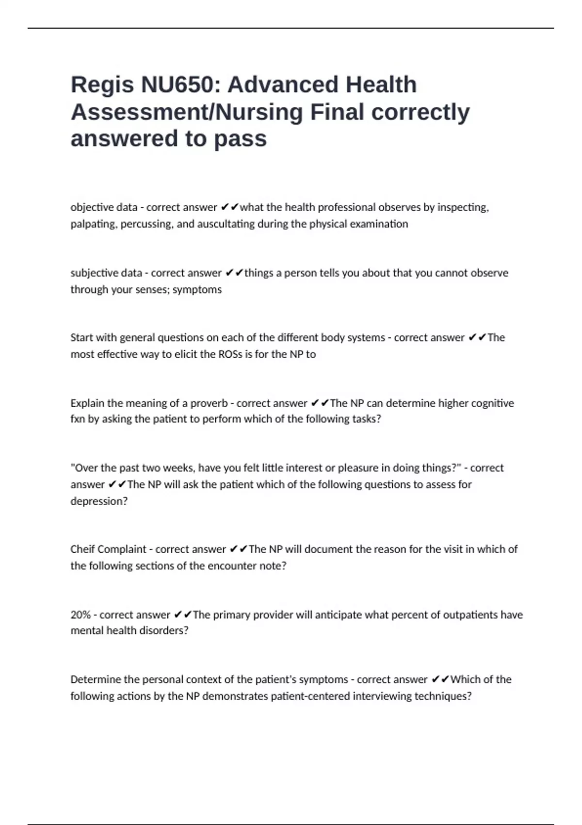 Assessment/Nursing Final correctly