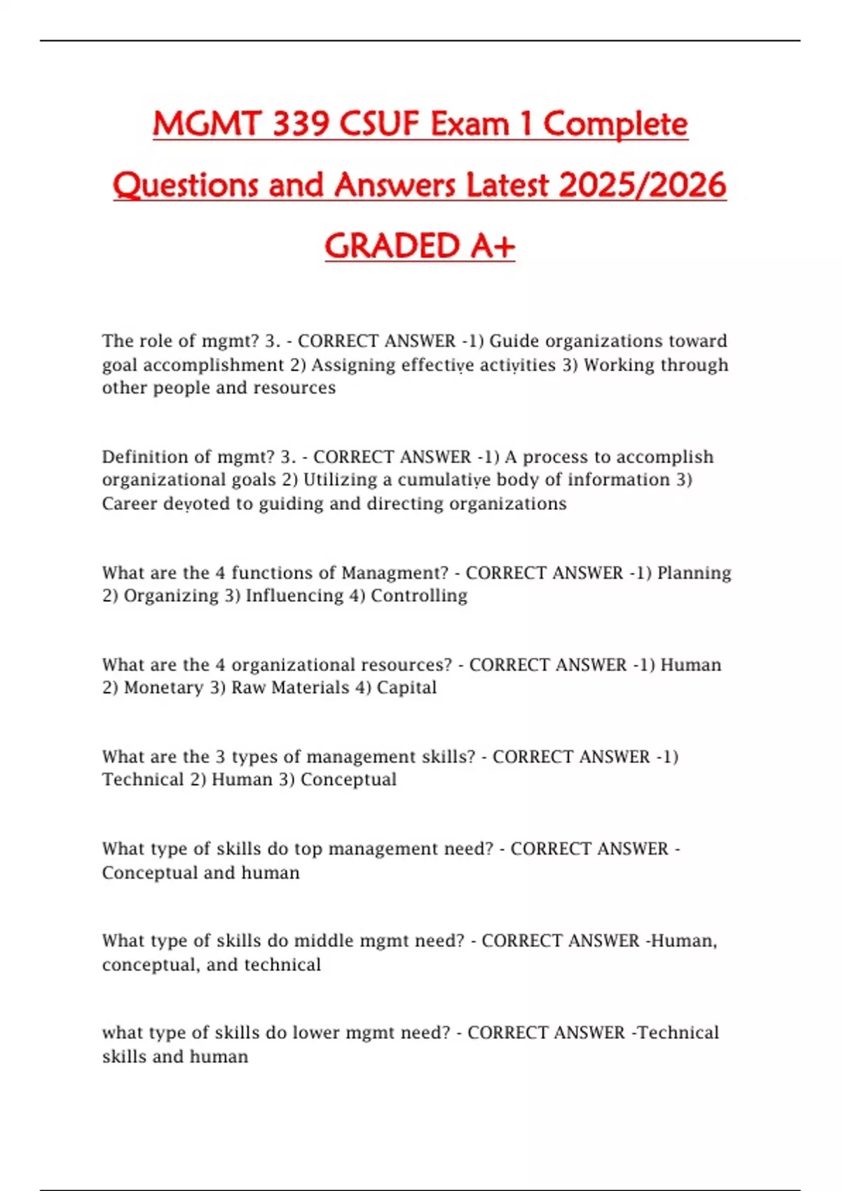 Definition of mgmt? 3. - CORRECT ANSWER -1) A process to accomplish
