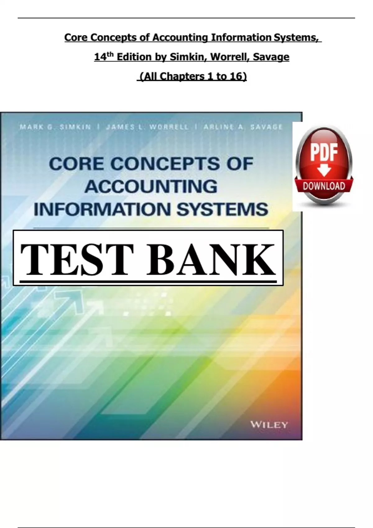 , Core Concepts of Accounting Information Systems, 14th Edition, by Simkin, Worrell and Savage