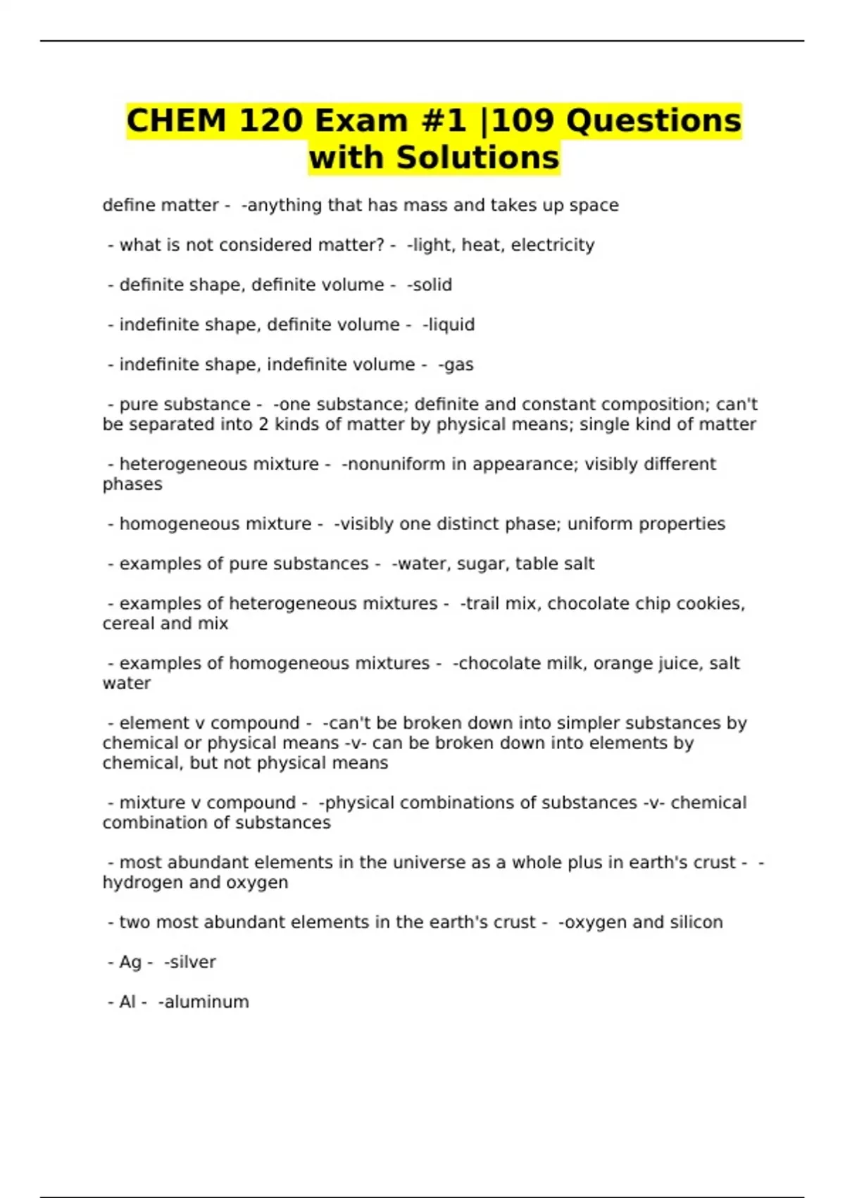 CHEM 120 Exam #1 |109 Questions with Solutions