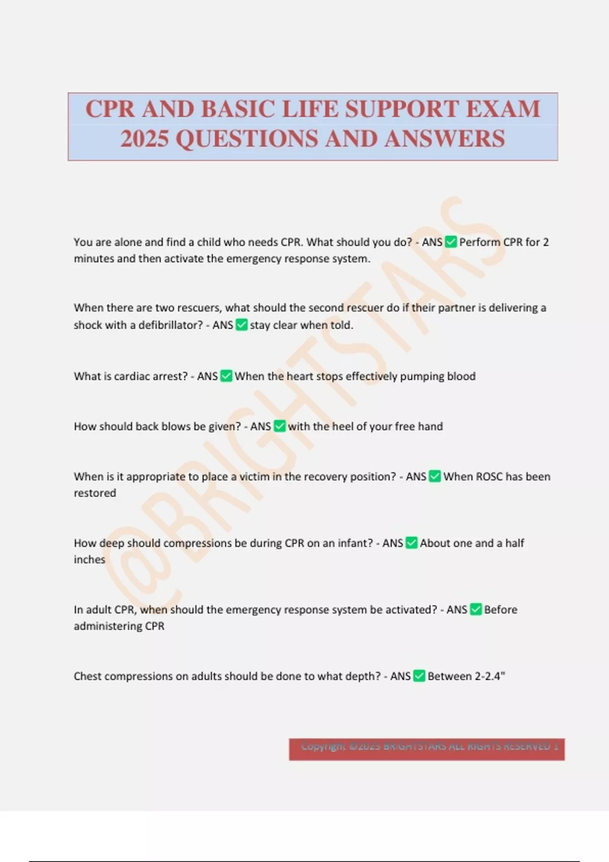 CPR AND BASIC LIFE SUPPORT EXAM 2025 QUESTIONS AND ANSWERS