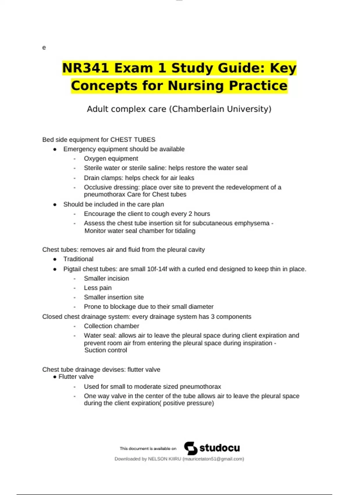 - Ensure all tubing is free of kinks and occlusions ● Chest tube and drainage