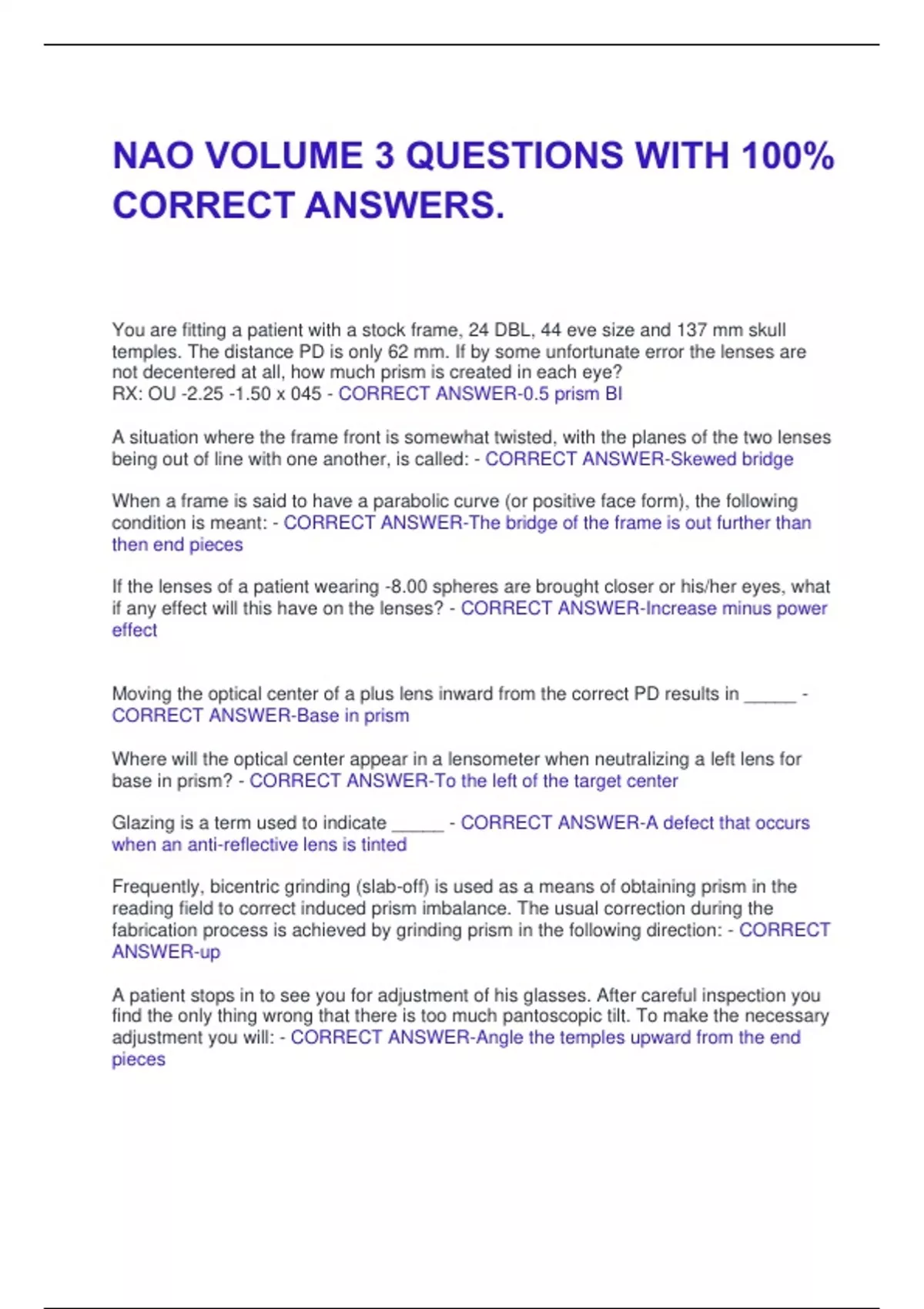 CORRECT ANSWERS.