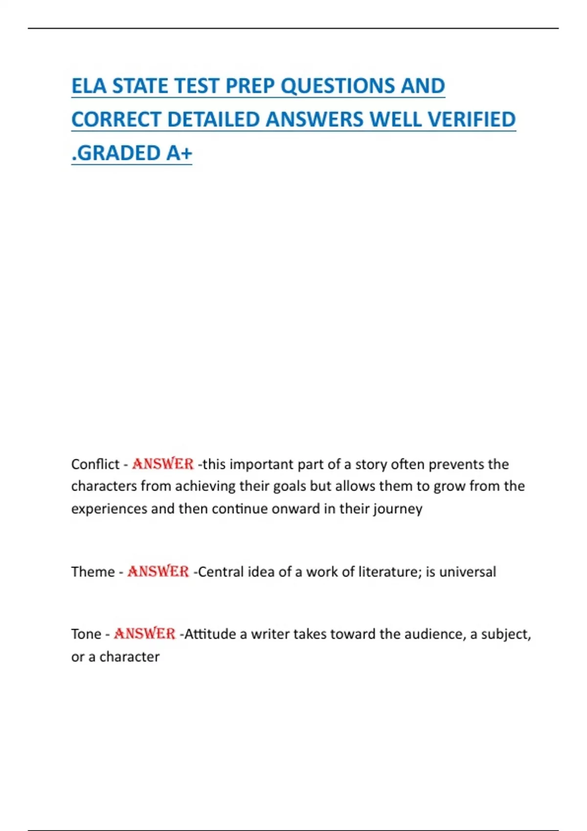 ELA STATE TEST PREP QUESTIONS AND CORRECT DETAILED ANSWERS WELL VERIFIED .GRADED A+