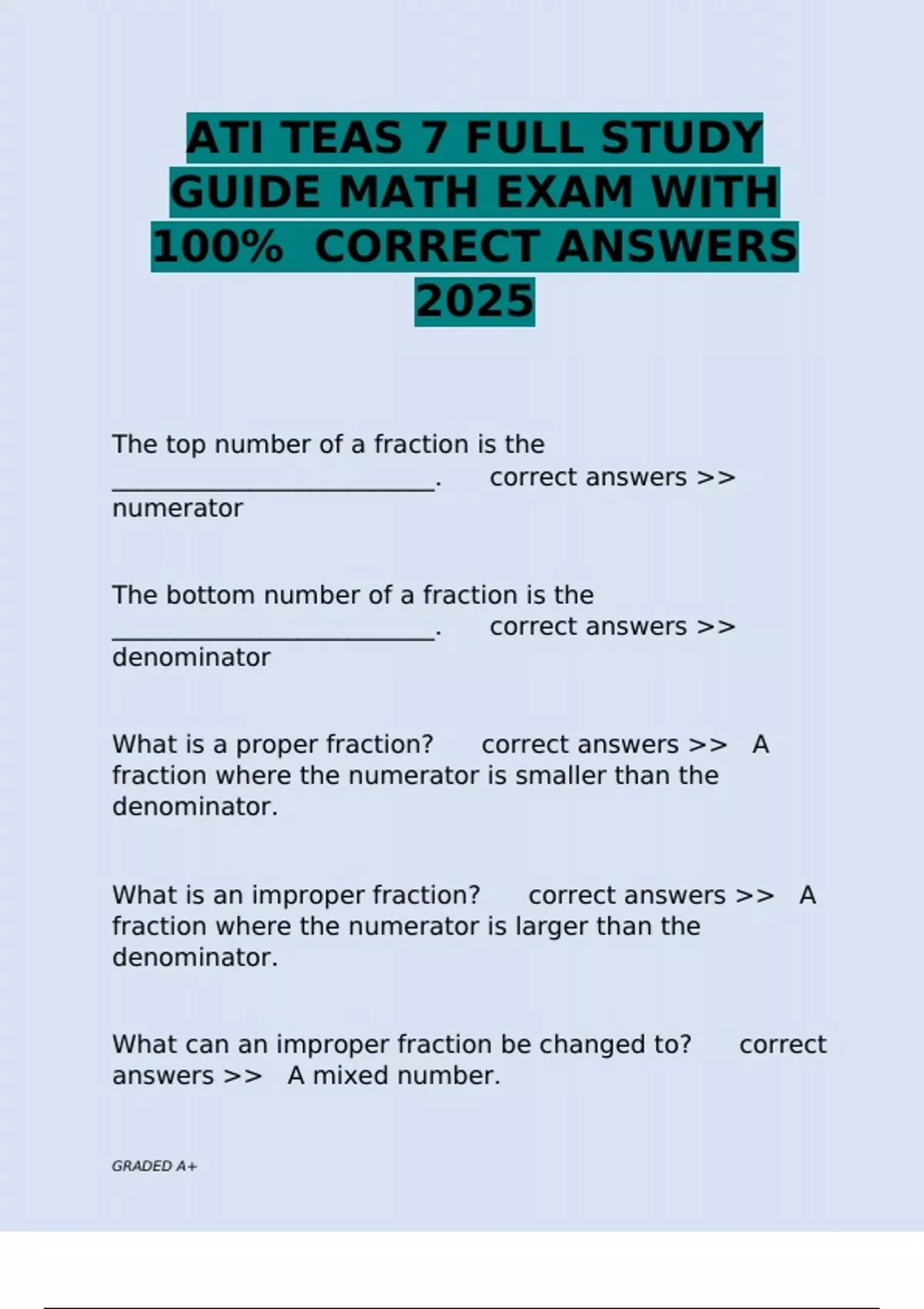 What is a proper fraction? correct answers >> A