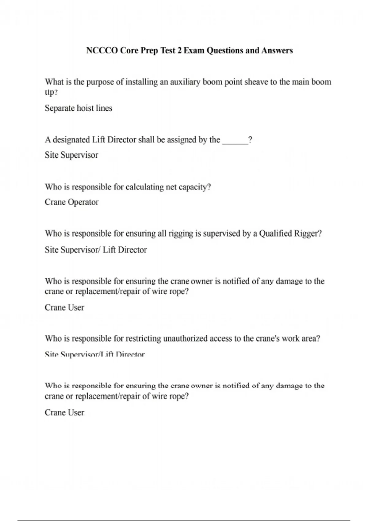 NCCCO Core Prep Test 2