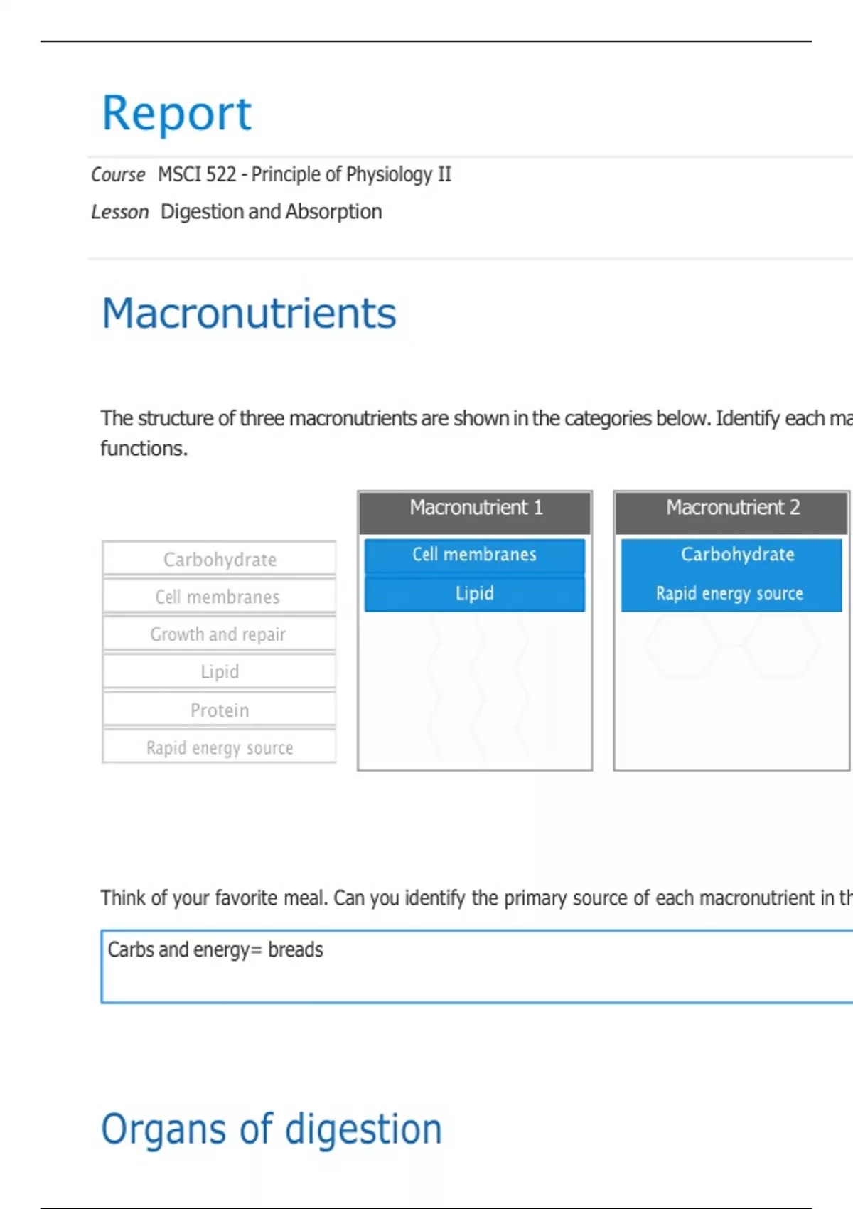 MSCI 522 Digestion and Absorption Report | Liberty University Online Academy