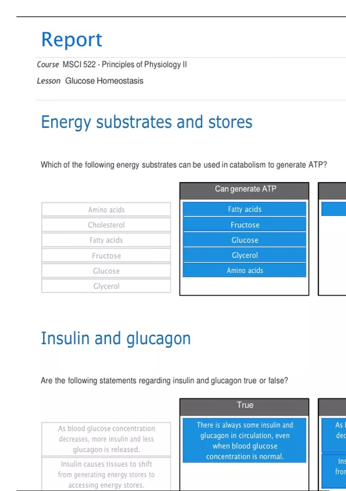MSCI 522 Glucose Homeostasis Report | Liberty University Online Academy