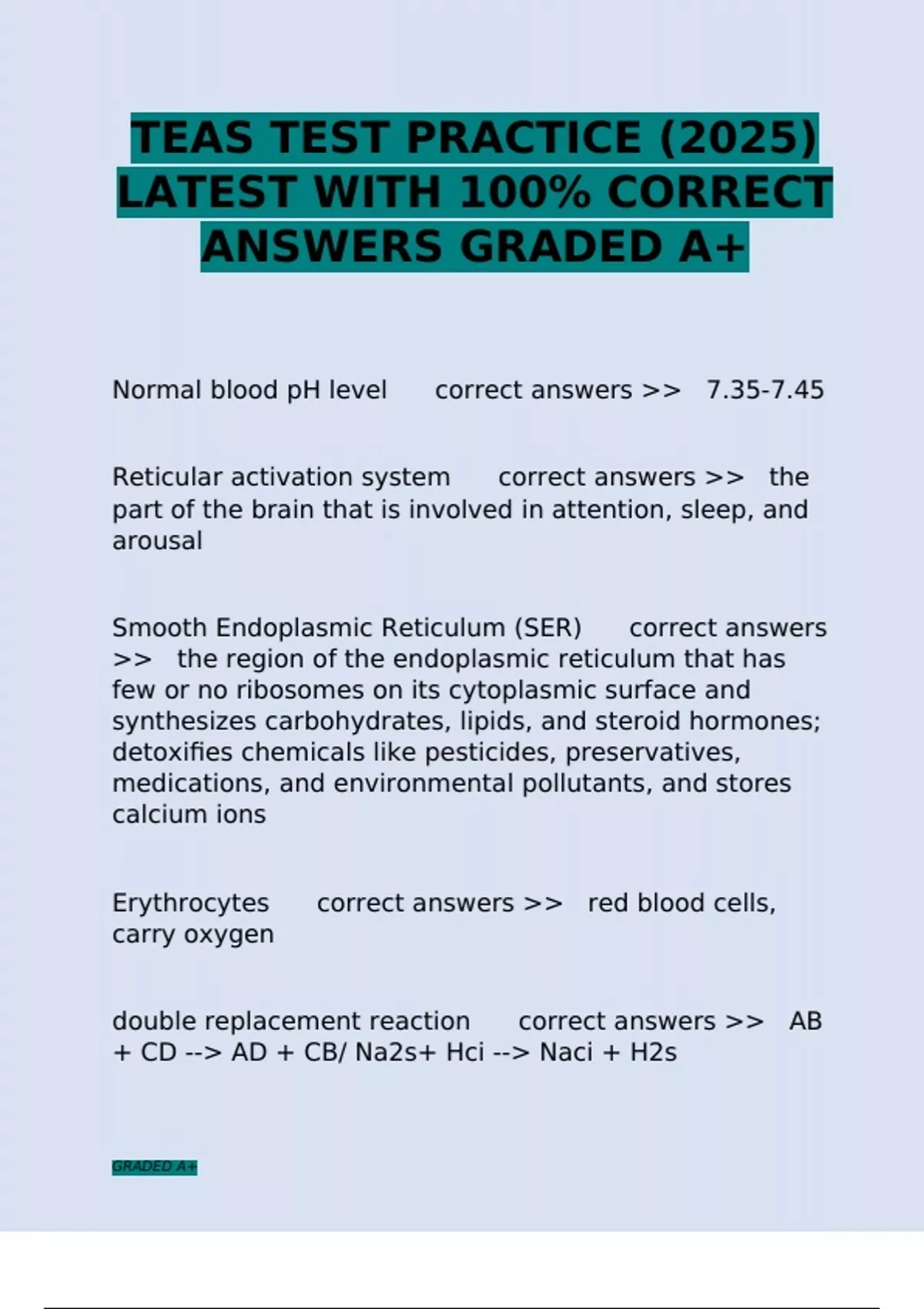 ANSWERS GRADED A+