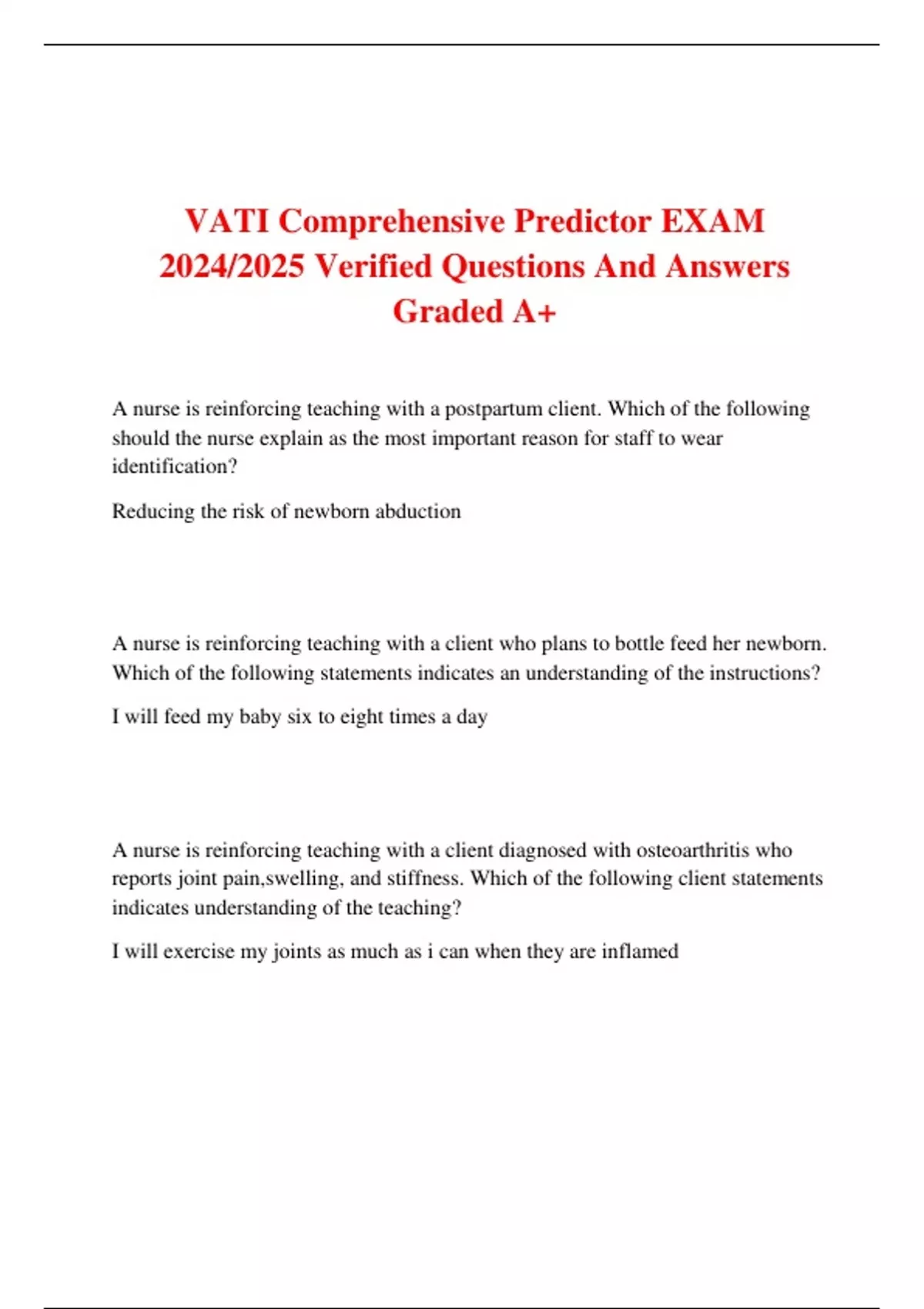 VATI Comprehensive Predictor EXAM 2024/2025 Verified Questions And Answers Graded A+