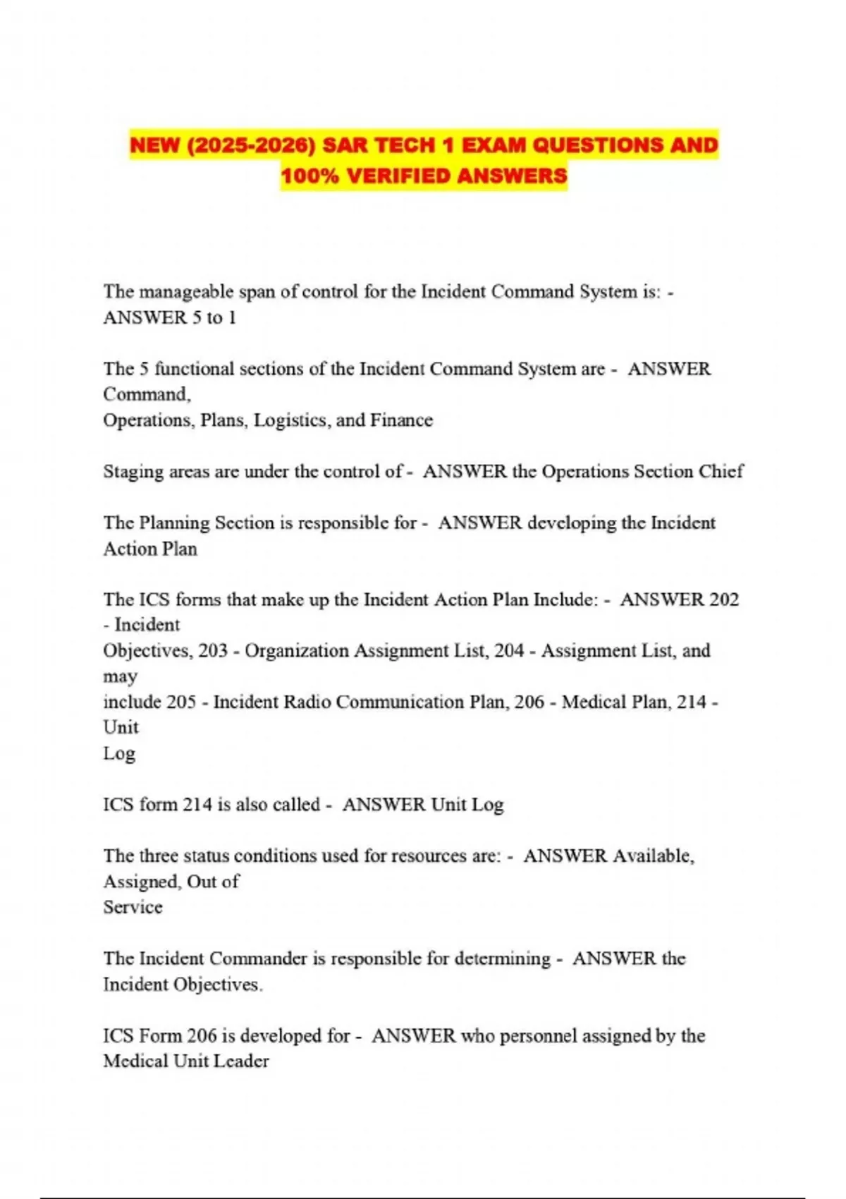 NEW () SAR TECH 1 EXAM QUESTIONS AND 100% VERIFIED ANSWERS