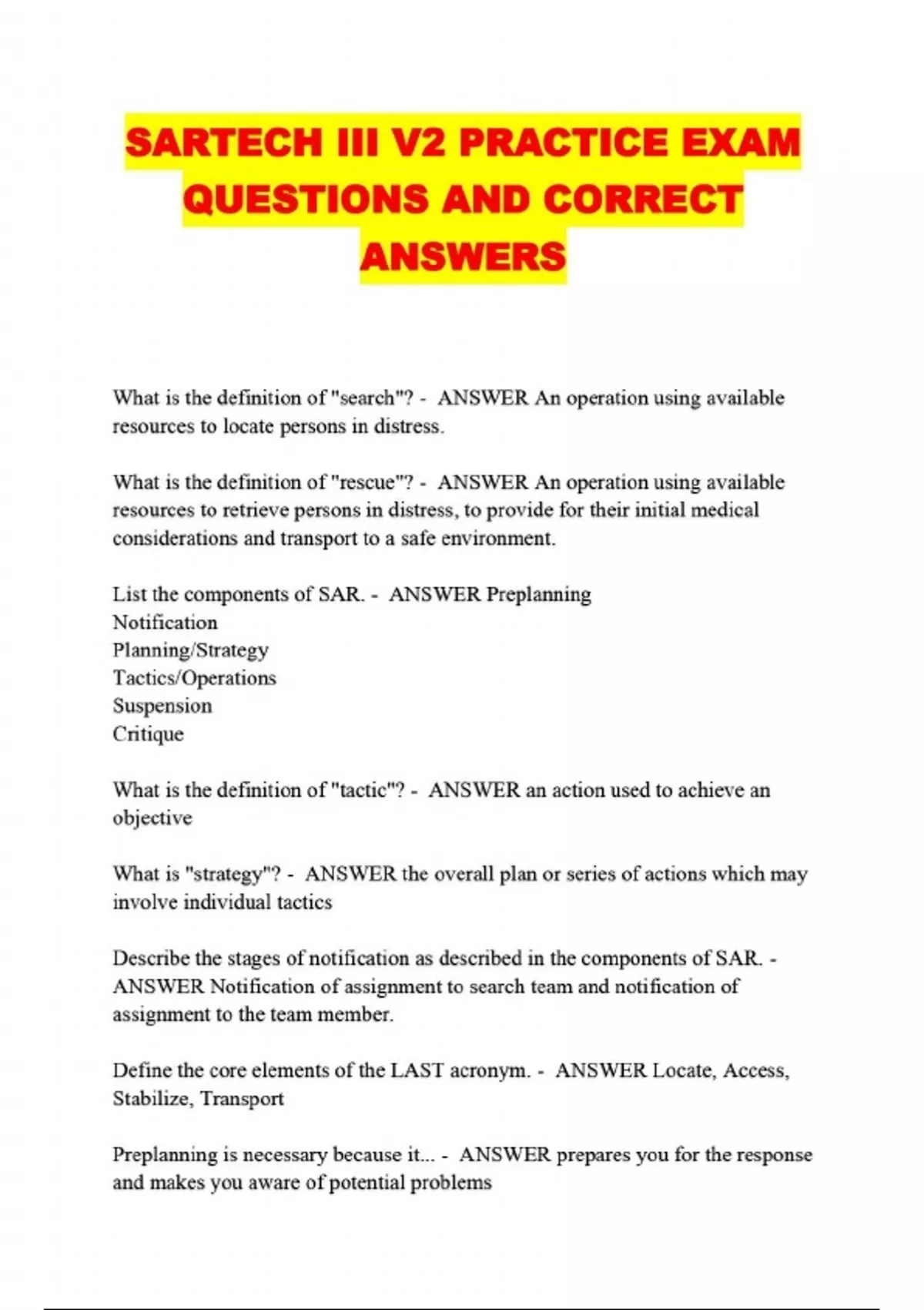 SARTECH III V2 PRACTICE EXAM QUESTIONS AND CORRECT ANSWERS....