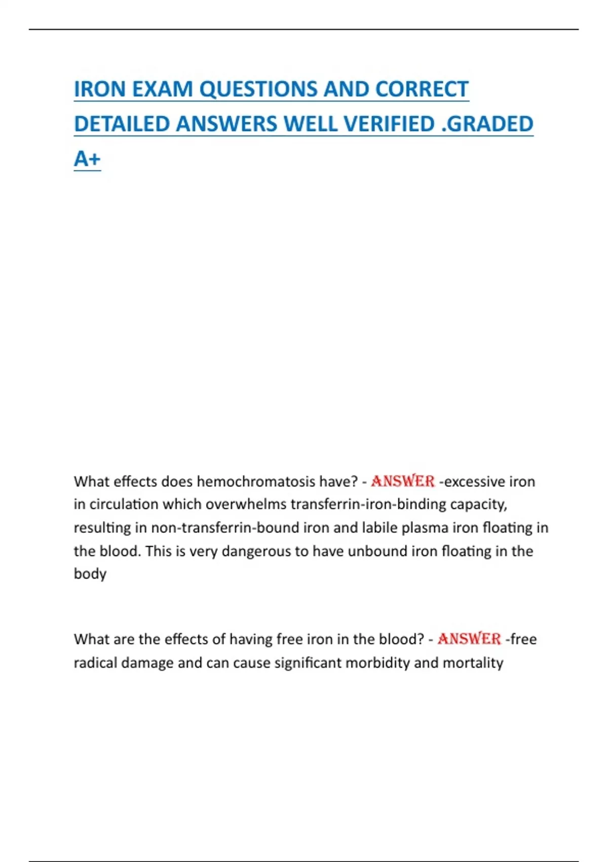 What effects does hemochromatosis have? - ANSWER -excessive iron