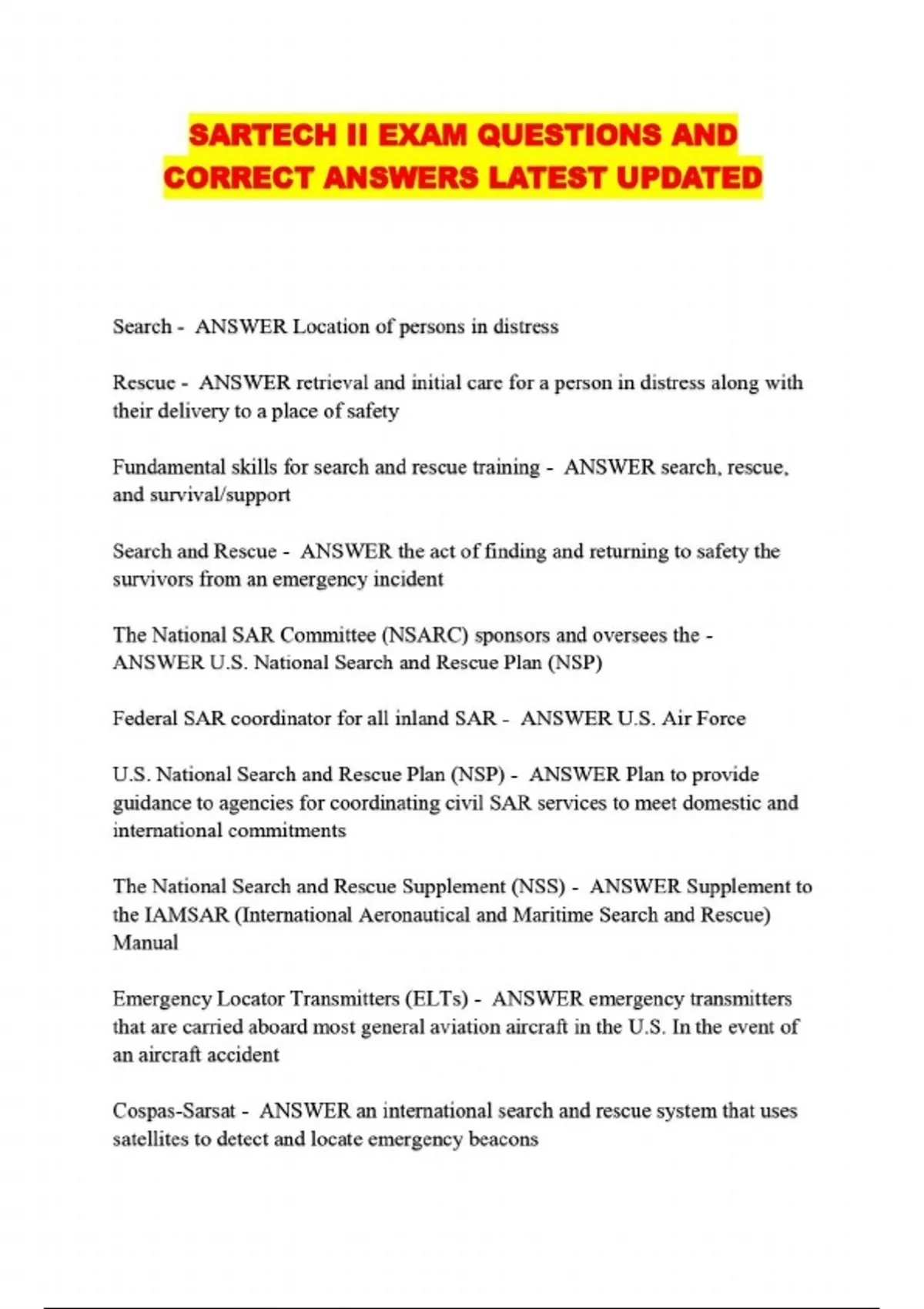 SARTECH II EXAM QUESTIONS AND CORRECT ANSWERS LATEST UPDATED....