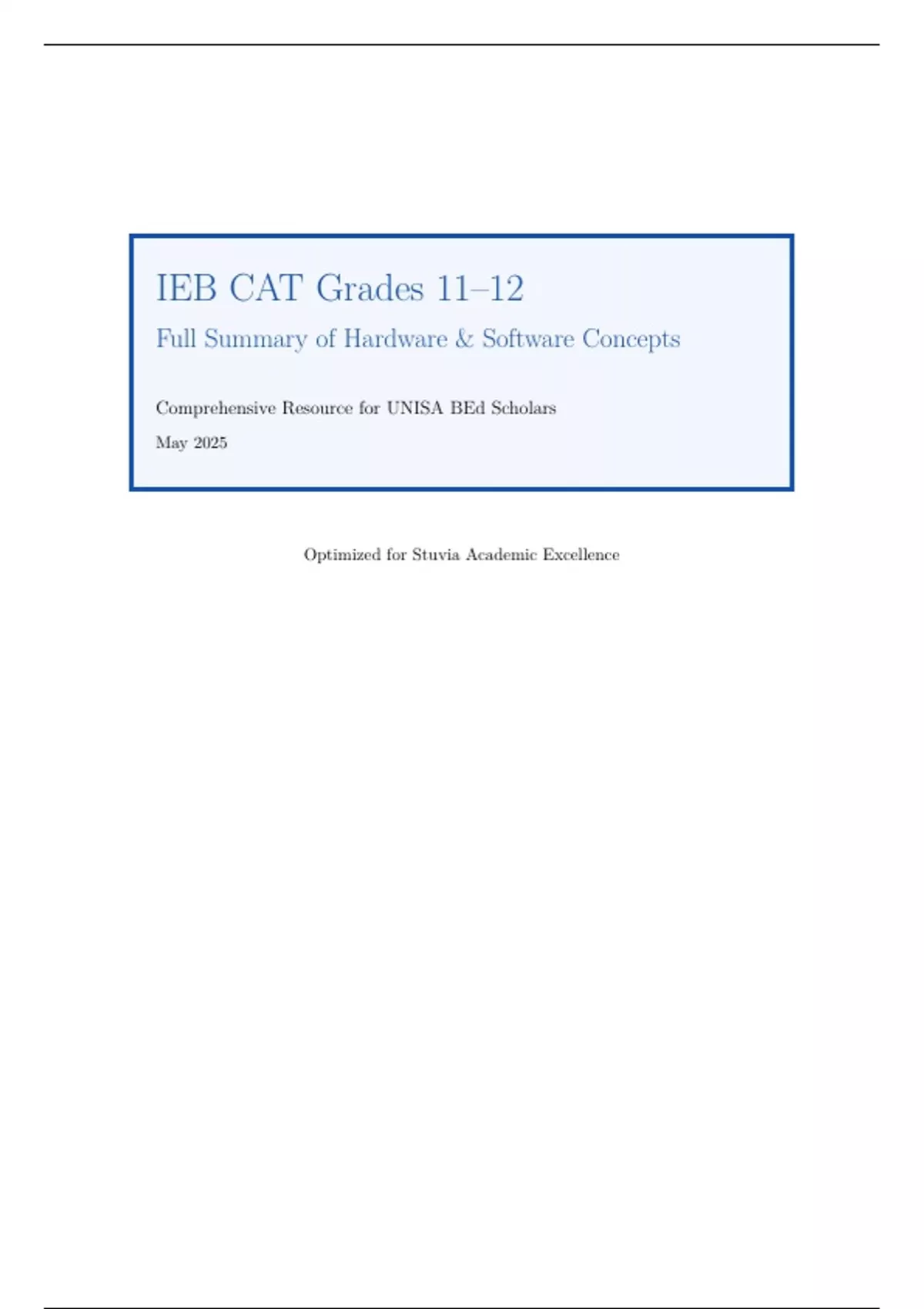 IEB CAT Grades 11–12 Full Summary of Hardware & Software Concepts Comprehensive Resource for UNISA BEd Scholars May 2025 Optimized for Stuvia Academic Excellence