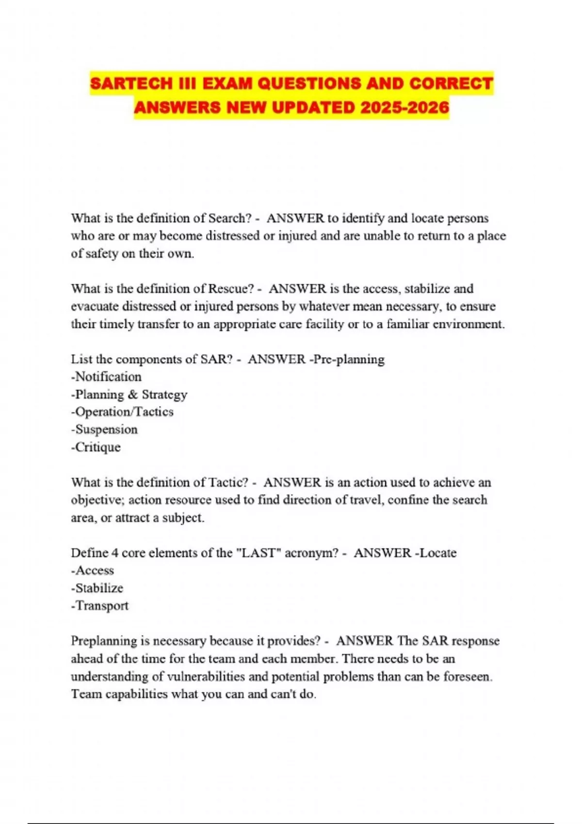 SARTECH III EXAM QUESTIONS AND CORRECT ANSWERS NEW UPDATED ....