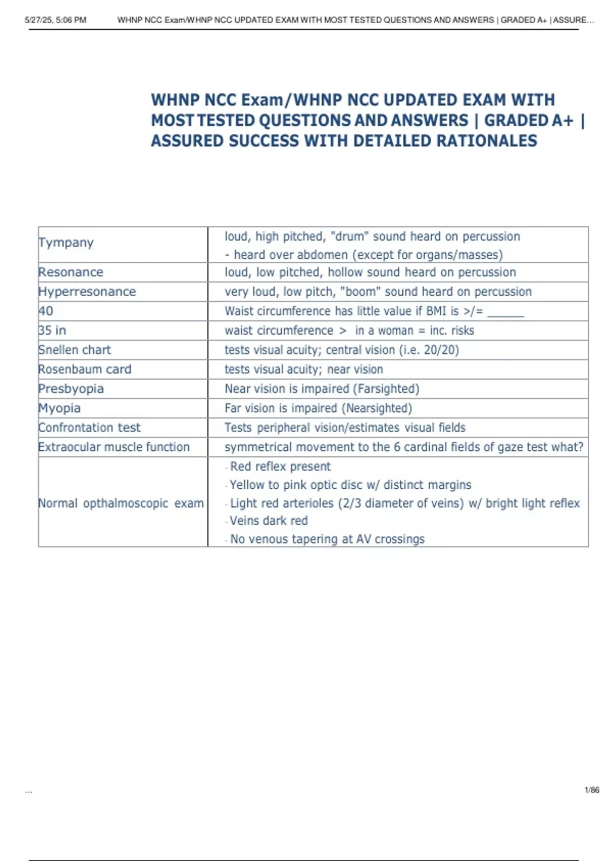 , 5/27/25, 5:06 PM WHNP NCC Exam/WHNP NCC UPDATED EXAM WITH MOST TESTED QUESTIONS AND ANSWERS | GRADED A+ | ASSURE…