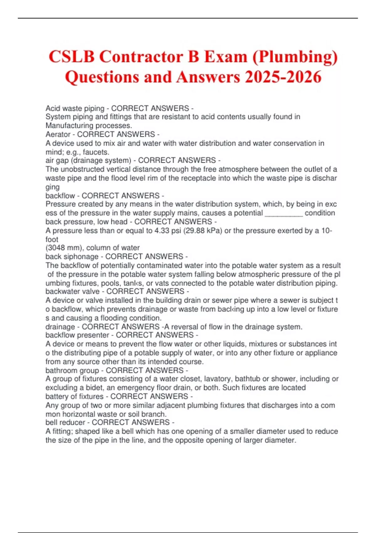 CSLB Contractor B Exam (Plumbing)