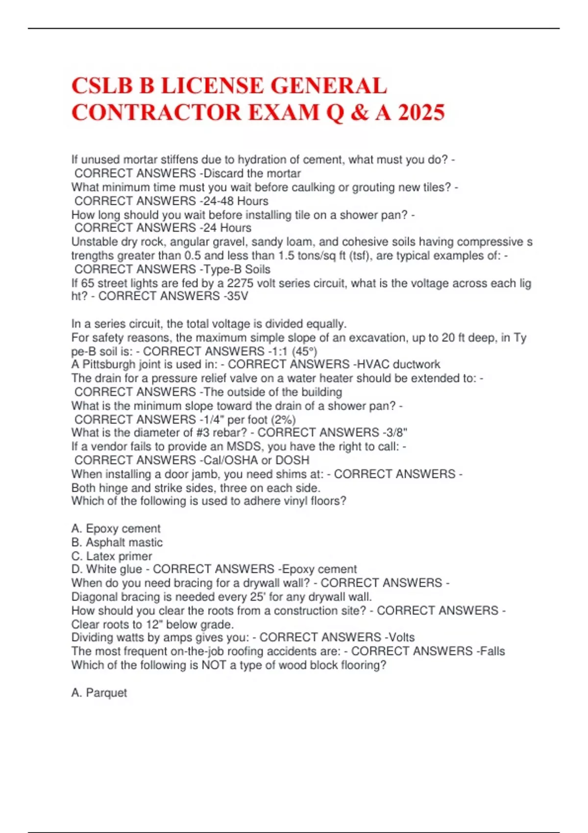 CSLB B LICENSE GENERAL CONTRACTOR EXAM Q & A 2025