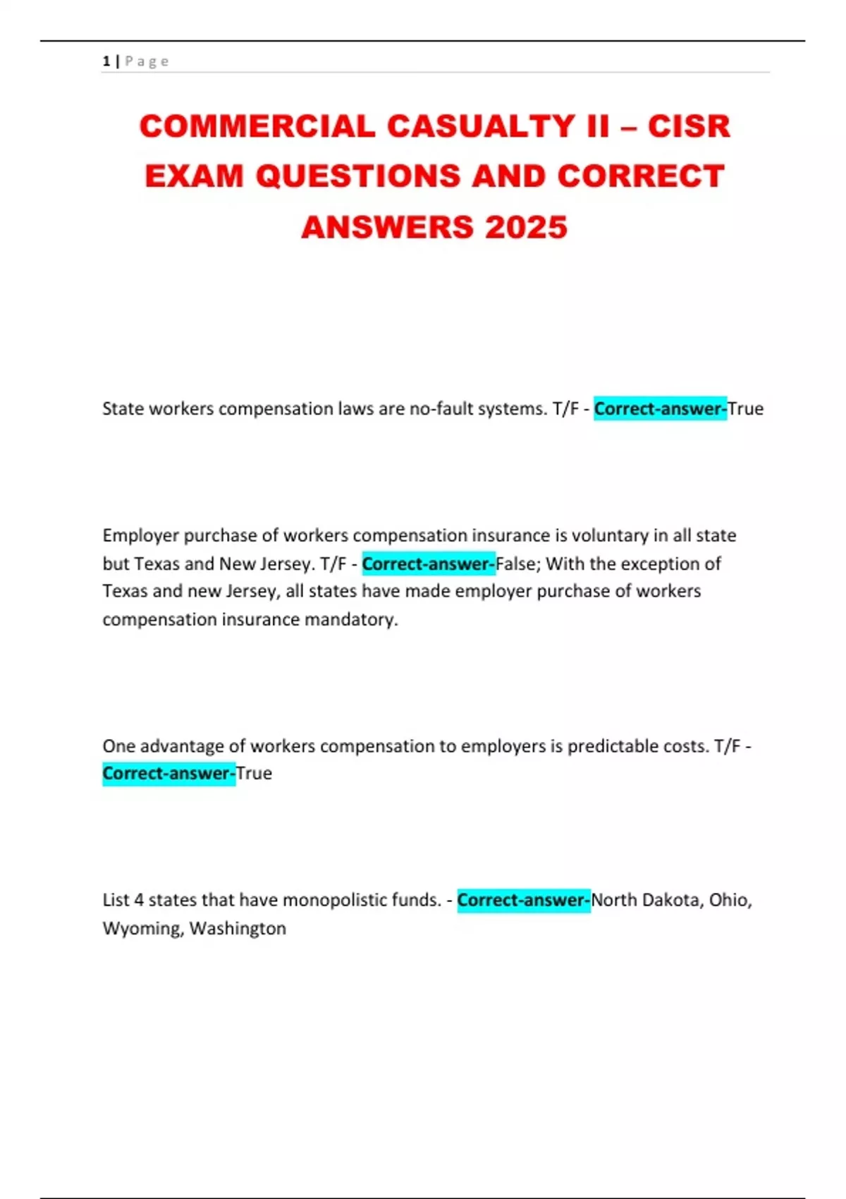 State workers compensation laws are no-fault systems. T/F - Correct-answer-True