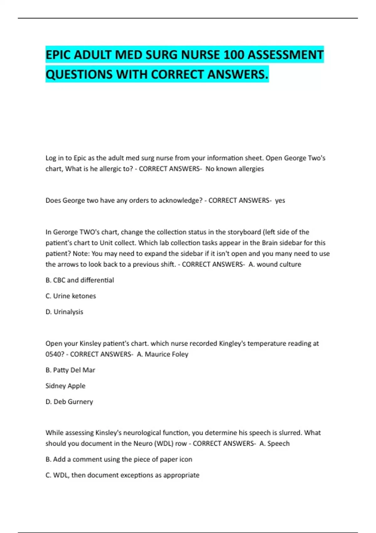 Log in to Epic as the adult med surg nurse from your information sheet. Open George Two's