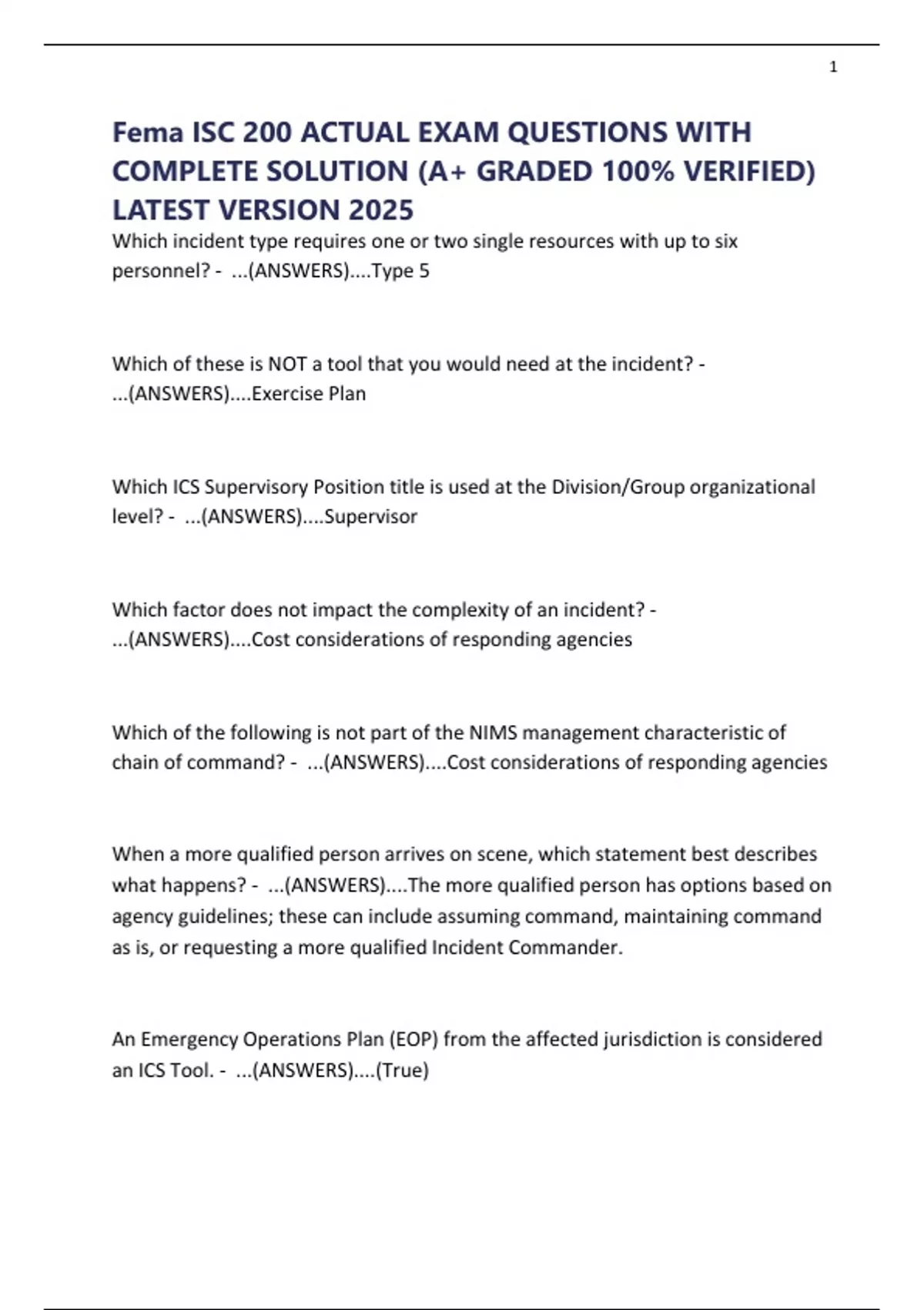 Fema ISC 200 ACTUAL EXAM QUESTIONS WITH COMPLETE SOLUTION (A+ GRADED 100% VERIFIED) LATEST VERSION 2025