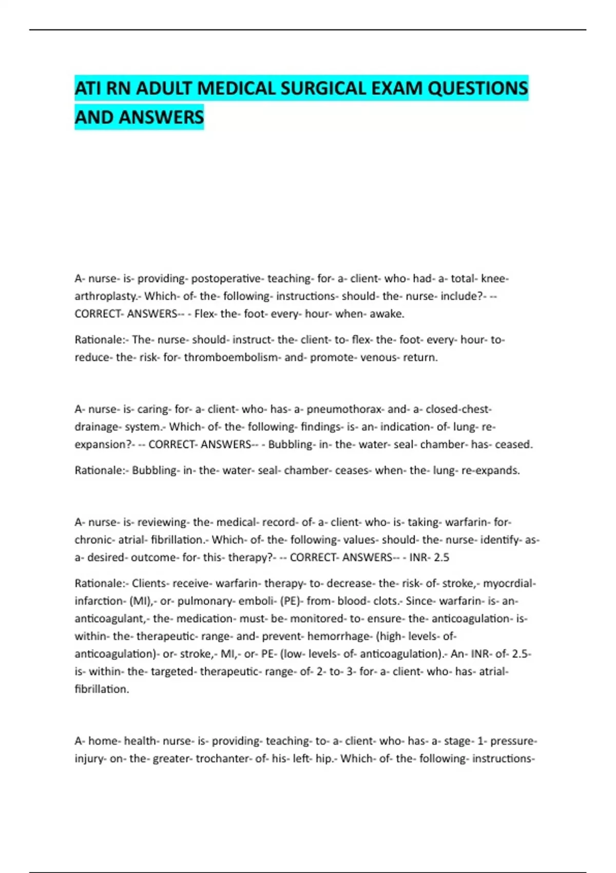 ATI RN ADULT MEDICAL SURGICAL EXAM ATI RN ADULT MEDICAL SURGICAL EXAM ATI RN ADULT MEDICAL SURGICAL EXAM