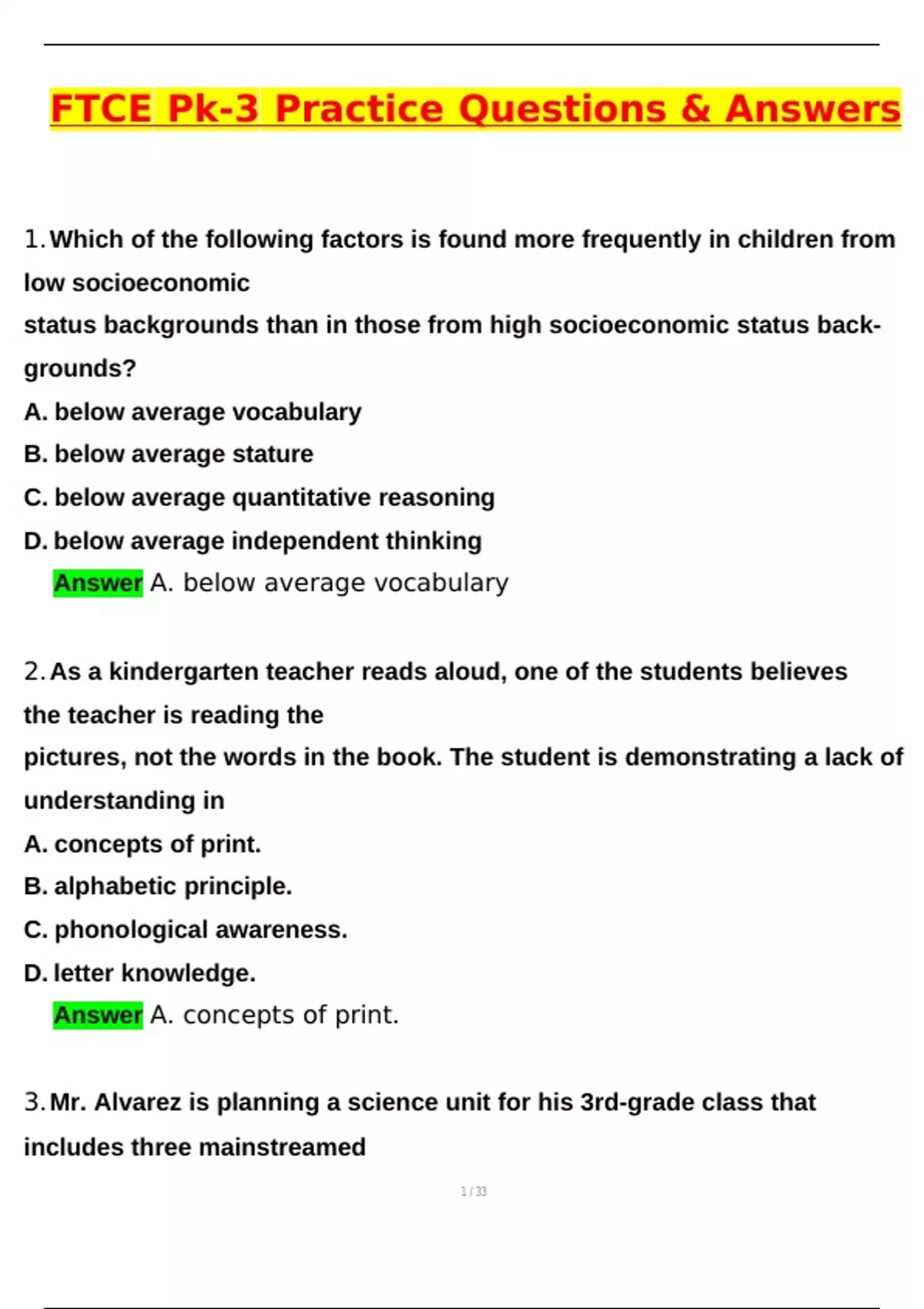 FTCE Pk-3 Practice Questions Latest 2025 Actual Questions and Verified Answers (2025 / 2026) A+ Grade 100% Guarantee Verified by Experts. FTCE PreK-3 exam study guide with practice questions 2025. How to pass FTCE PreK-3 developmental knowledge test. FTCE PreK-3 math section tips and tricks. Best online resources for FTCE PK-3 language arts preparation. FTCE PreK-3 exam complete solution package with verified answers. FTCE PreK-3 practice test with expert-verified answers 2025. Comprehensive study plan for FTCE PreK-3 exam 2025/2026. FTCE PreK-3 developmental knowledge practice questions PDF. FTCE PK-3 math concepts explained for beginners. FTCE PreK-3 language arts sample questions and answers. FTCE PreK-3 exam preparation courses near me. How to improve FTCE PreK-3 test scores quickly. FTCE PreK-3 exam latest changes and updates for 2025. FTCE PK-3 developmental knowledge flashcards download. FTCE PreK-3 math problem-solving strategies. FTCE PreK-3 language arts teaching methods and techniques. FTCE PreK-3 exam success stories and testimonials. FTCE PK-3 developmental knowledge study group online. FTCE PreK-3 math video tutorials for visual learners. FTCE PreK-3 language arts lesson plan examples. FTCE PreK-3 exam time management strategies. FTCE PK-3 developmental knowledge practice exams with explanations. FTCE PreK-3 math formulas and concepts cheat sheet. FTCE PreK-3 language arts writing prompts and samples. FTCE PreK-3 exam last-minute revision tips and tricks