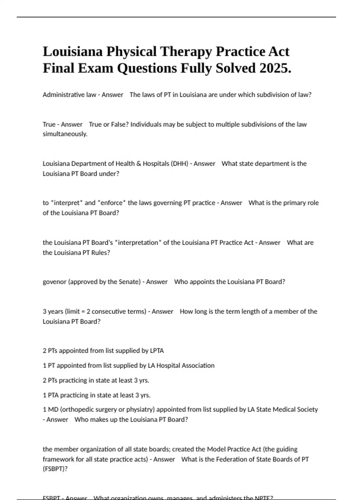 the Louisiana PT Board's *interpretation* of the Louisiana PT Practice Act - Answer What are