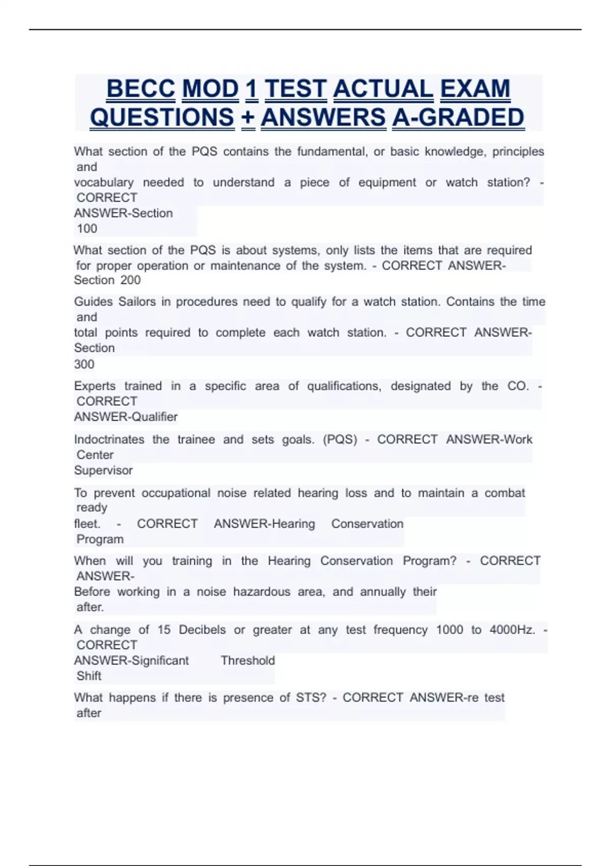 BECC MOD 1 TEST ACTUAL EXAM QUESTIONS + ANSWERS A-GRADED