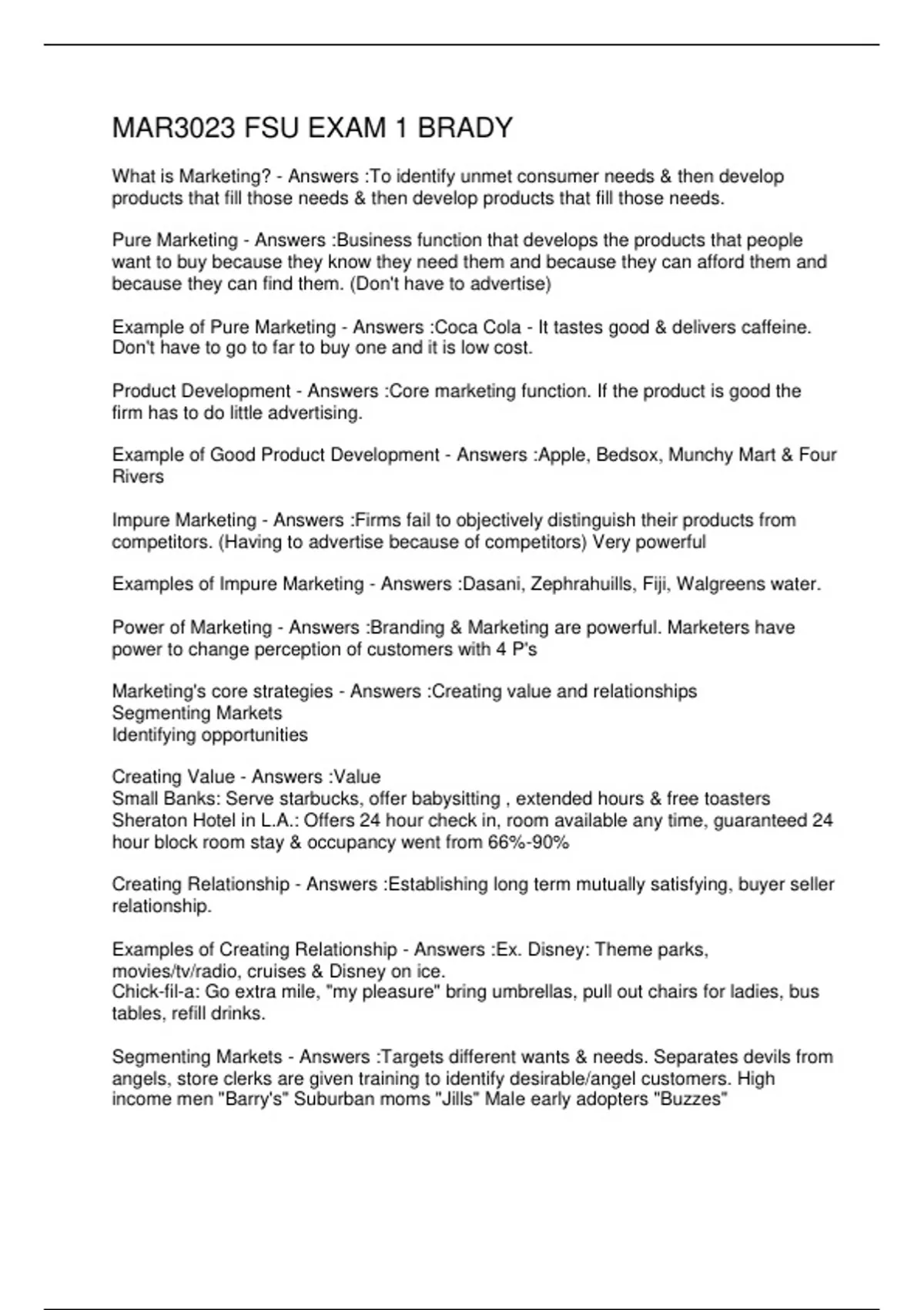 Example of Pure Marketing - Answers :Coca Cola - It tastes good & delivers caffeine.