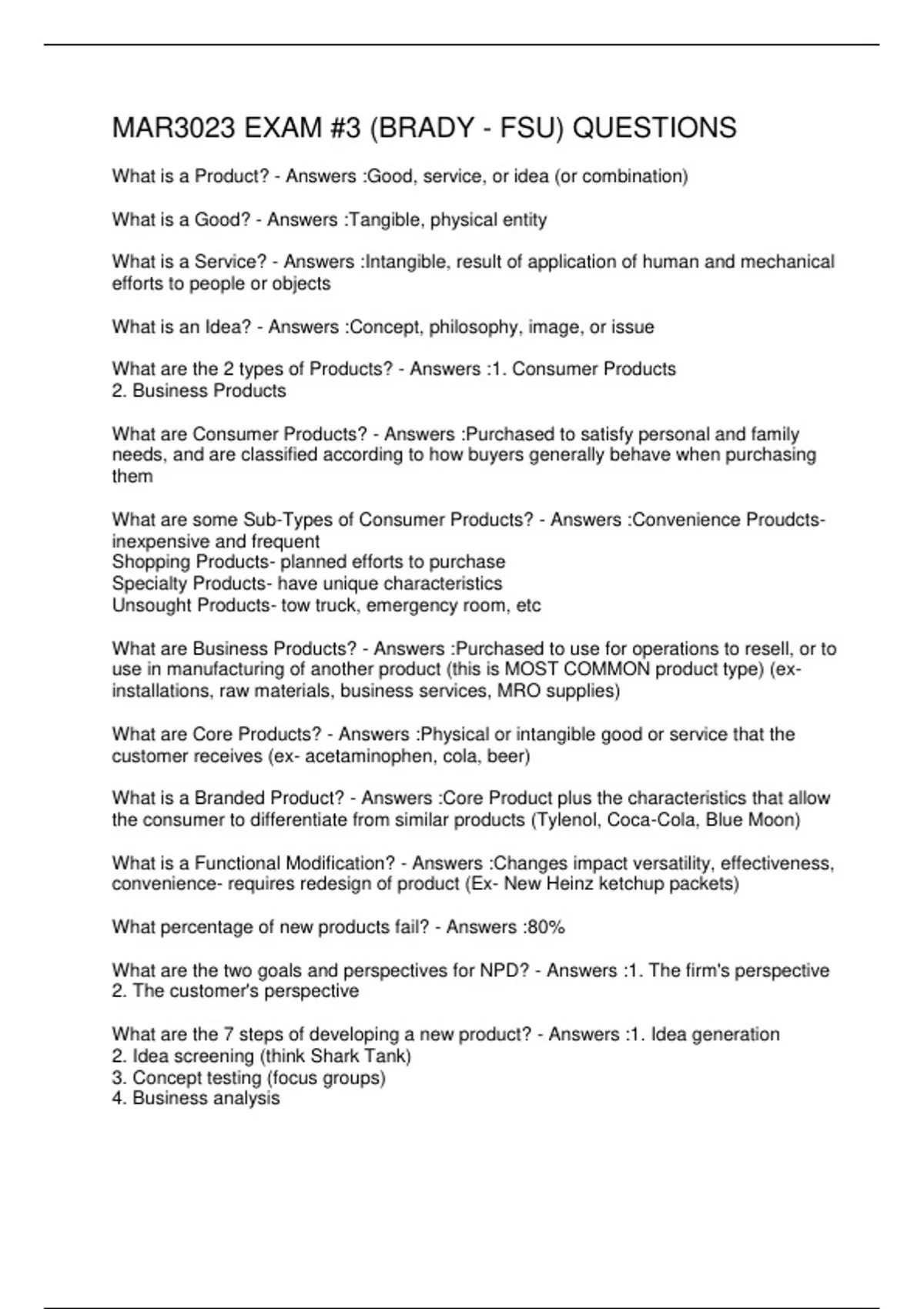 MAR3023 EXAM #3 (BRADY - FSU) QUESTIONS