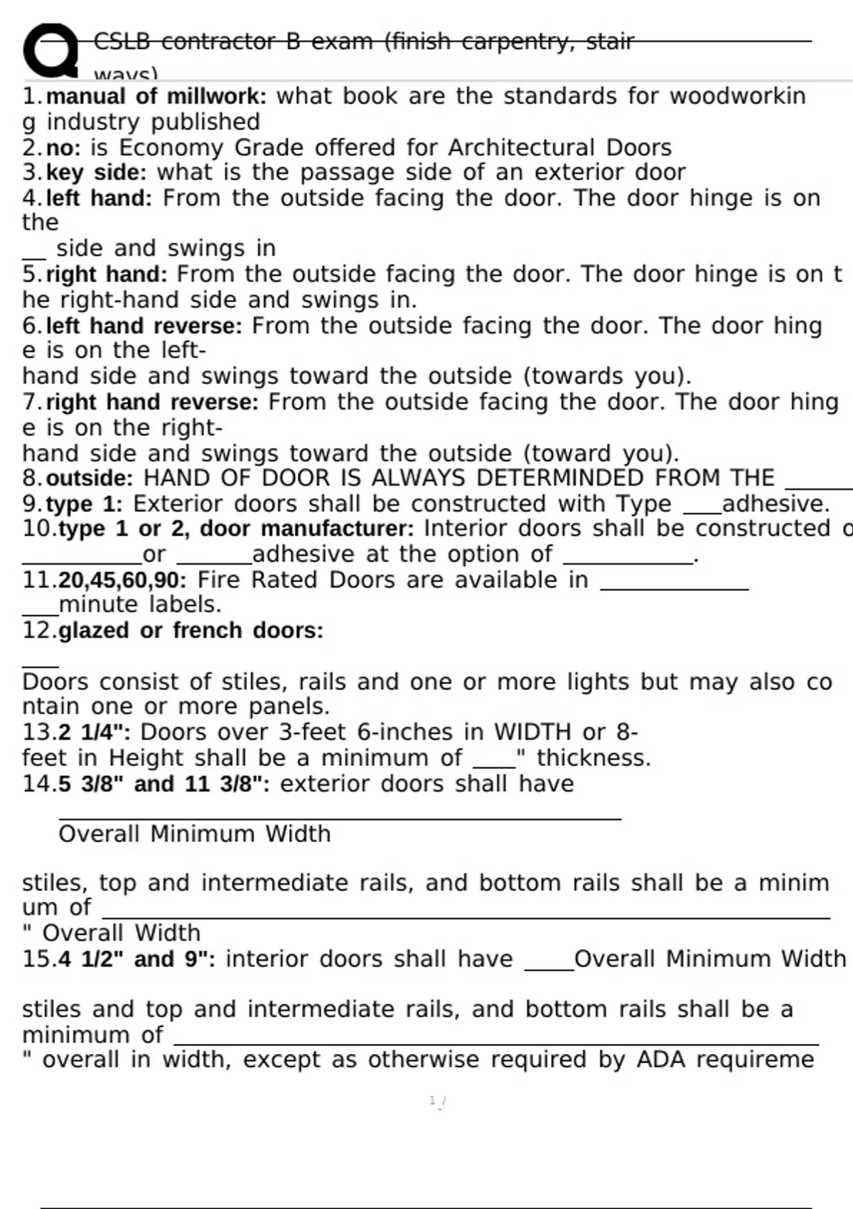 10.type 1 or 2, door manufacturer: Interior doors shall be constructed o