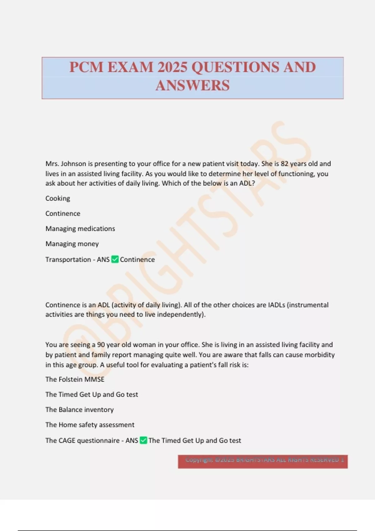 lives in an assisted living facility. As you would like to determine her level of functioning, you