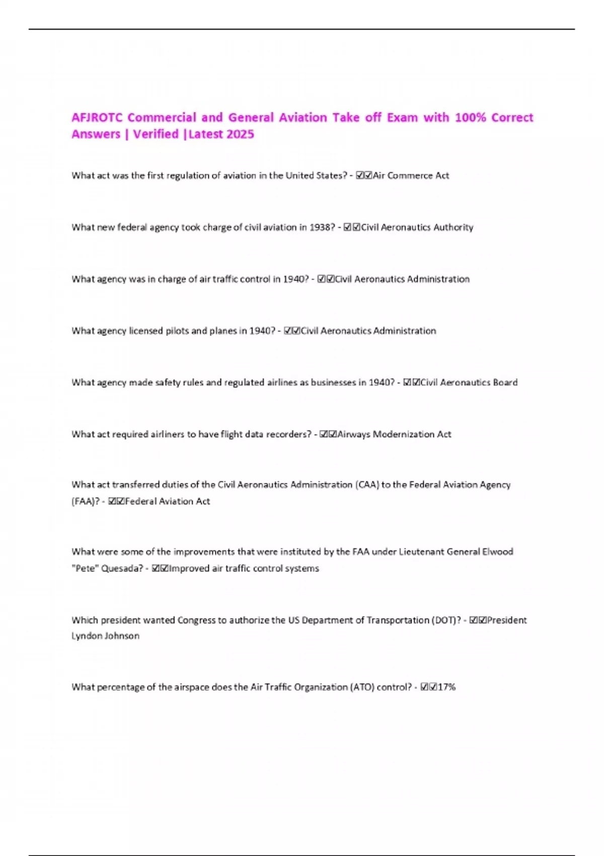 AFJROTC Commercial and General Aviation Take off Exam with 100% Correct Answers | Verified |Latest 2025