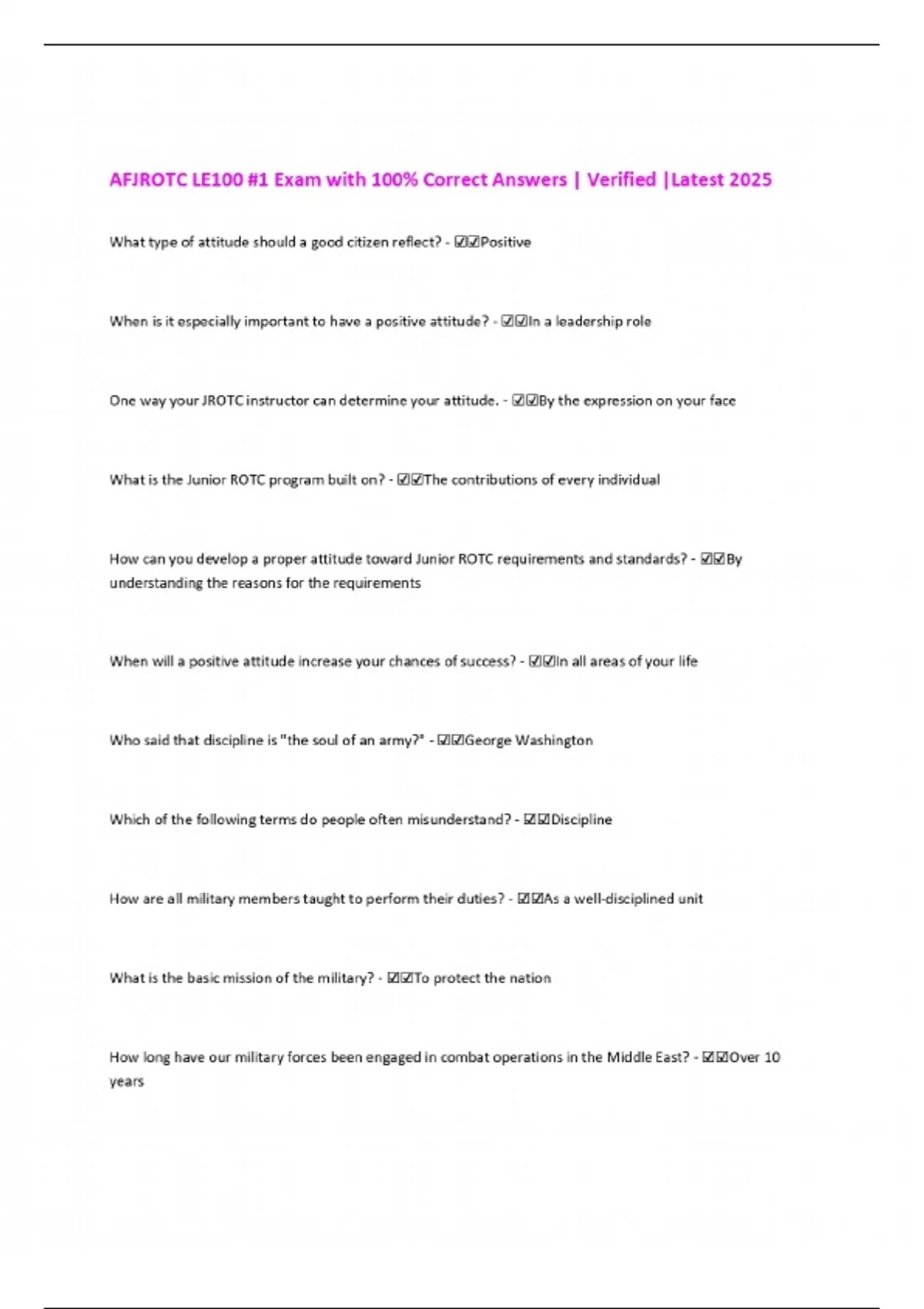 AFJROTC LE100 #1 Exam with 100% Correct Answers | Verified |Latest 2025